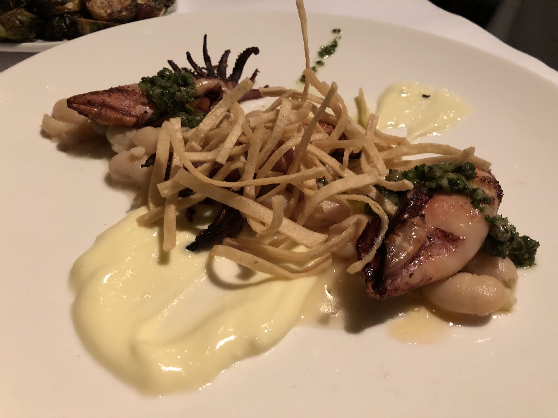 We started off with anti pasties of the Tuna Meatballs and Roasted Brussels sprouts. Both were tasty, the tuna meatballs were a little dry, but the sauce on the tomatoes and greens for it were delicious. The Brussels were as one would hope for them to be--al dente and lightly seasoned.