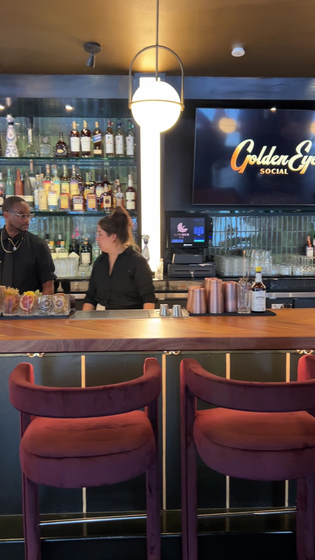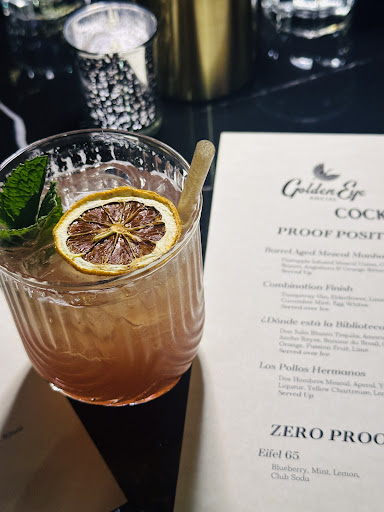 Golden Eye Social definitely makes a statement with its fancy, upscale ambiance. It's clearly designed to be a stylish spot. Our experience had some real highlights. The food was genuinely very good. We absolutely loved the mushroom steak and the fries; both were delicious. That mushroom steak, especially, felt pretty luxurious – definitely a treat for a special occasion rather than an everyday order. And our cocktails, a Manhattan and an Espresso Martini, were both well-made and enjoyable. Beyond the food and drinks, a fun surprise was their augmented reality darts. These aren't just regular darts; it's that cool setup with the 3D projectors, which made for a really unique and interactive game. We had a blast playing, and it was a bonus that it was free for us during our visit, though I understand it can typically cost around $45, so it's worth checking current pricing if you plan to play. However, where Golden Eye Social truly fell short was in its limited vegetarian and especially vegan options. Aside from the fries and the mushroom steak (which I suspect might have had egg, like other dishes), there was hardly anything else available for those looking for plant-based choices. In a city like San Francisco, where you're surrounded by restaurants boasting diverse and inclusive menus, this felt like a significant oversight. To truly appeal to a broader clientele and genuinely stand out in this competitive culinary landscape, they really need a more comprehensive and clearly labeled plant-based selection on their menu. Overall, Golden Eye Social offers a very stylish setting, good food and drinks, and some unique entertainment. If they could infuse a bit more warmth into the ambiance and significantly expand their inclusive menu options, it would truly elevate...