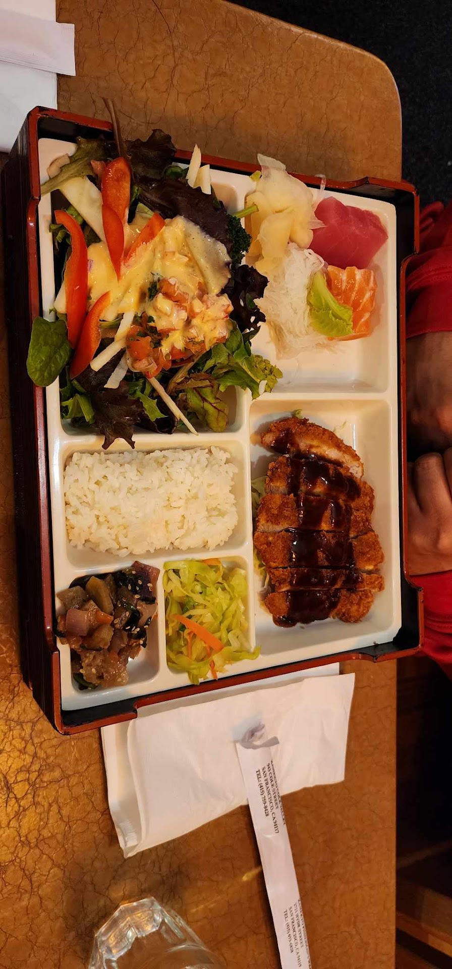 Read moreWe got 2 rolls of sushi--the Cherry Blossom Roll (salmon, cucumber, avocado and tuna) and the Bay Roll (scallop, crab meat, wasabi sauce, salmon and lemon). Both were delicious! I took off the lemon rinds that were on mine but it didn't take away any of the lemon flavor. I loooved the sushi! The chicken teriyaki was good. The tofu teriyaki was, according to my mom, "excellent," and she doesn't use that word to describe food often. My parents also ordered the tofu soup, which they said was good, but we were so full at that point that they could only eat one bite!