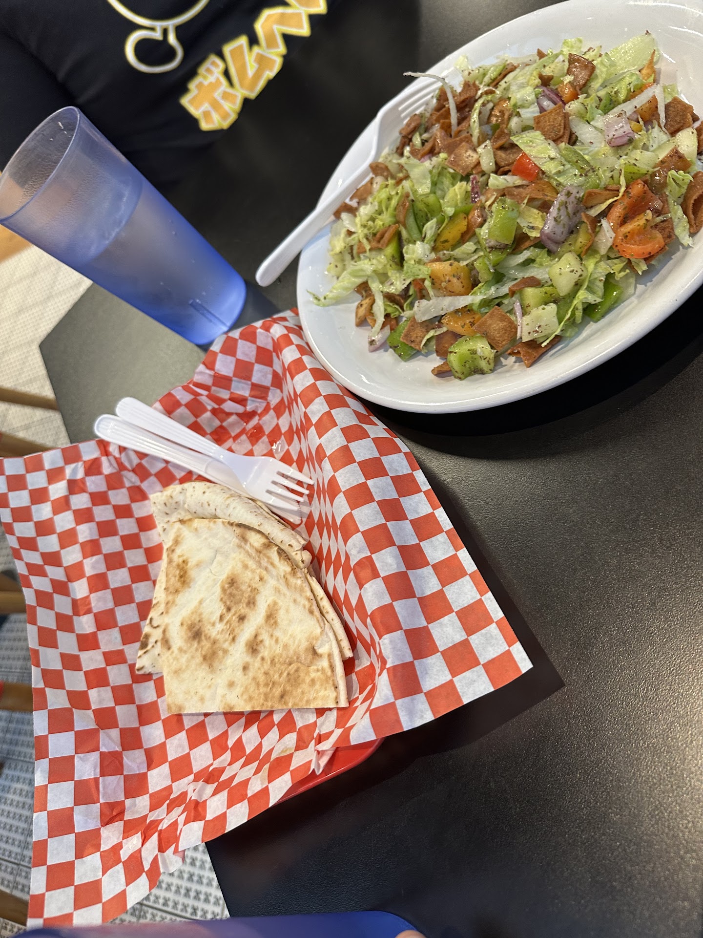ย ย ย Read moreWas excited to try this place out before a show at Golden Gate Theater on a Saturday night and rather disappointed. Food is decent and for SF price was ok (we did the quesabirria combo and the chicken shawarma plate) - but took awhile to come out. Dirty tables, no one is bussing or clearing the trash area- I saw four customers spraying their own tables because it was such a mess- we did the same. there is no clear system for picking up your food - some people are given a receipt - some are not. We only got half our order. Random boxes are on counters, no extra utensils, cups, water station? Think there was one guy at counter and one person in kitchen. Have no idea what is going on in this place- will never...