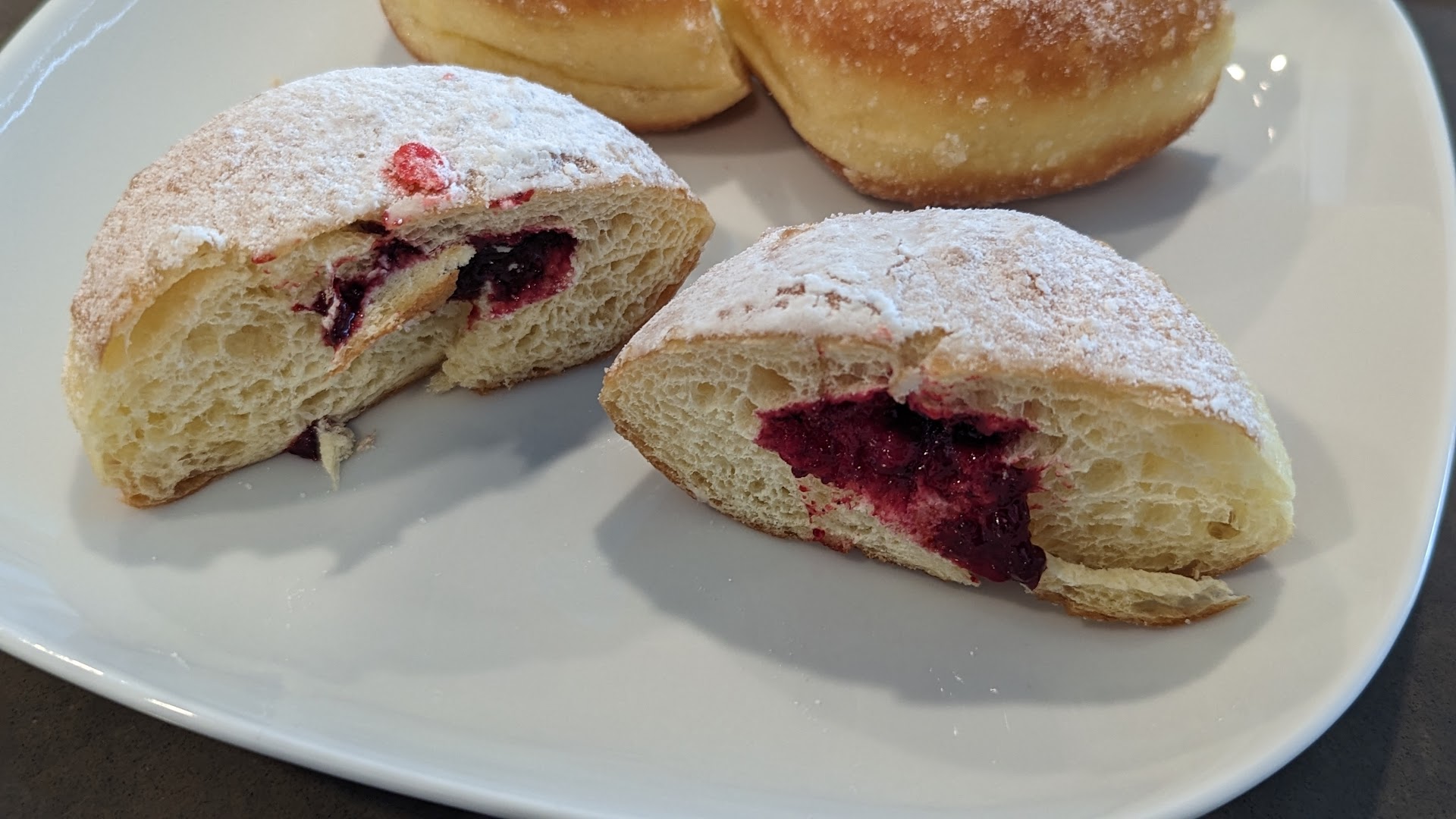 Berliner doughnut was so soft and light, tried both custard filled and strawberry jam filled. High marks to both, but the strawberry is perfectly tart and is...