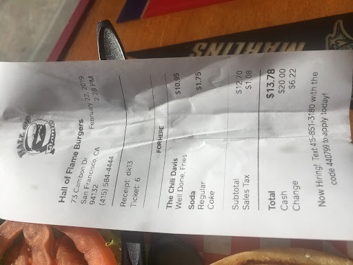 Read moreI have drove by the area many times for other reasons and you may not even notice this place without doing some research since it is located away from everything else. Finally I got the chance to give it a shot, I was hungry where I was craving for a burger and in the back of my head this place was calling for me. Upon arrival, there was a line out the door since it was during the lunch rush, but I did not mind since I knew it was going to be good. When it was my turn to order, I was greeted with a happy smile by their cashier. They offer burgers, sandwiches, many style of fries, wings, salads and much more. Everything is made to order which is always a plus for me and I never mind the wait since I am a very patient person. The staffs are very welcoming, well trained and understanding which made my visit a satisfying one. They theme of this place is inspired by sports and more importantly the Bay Area sports teams, such as the San Francisco Giants, San Francisco 49ers and the San Francisco warriors. From the service to food it was a great experience. I highly recommend this place to all burger enthusiasts, to anyone in need of a quick bite, or if you just so happen to be in the area and want to try something new. I definitely will be back to tryout the other delicious options they...