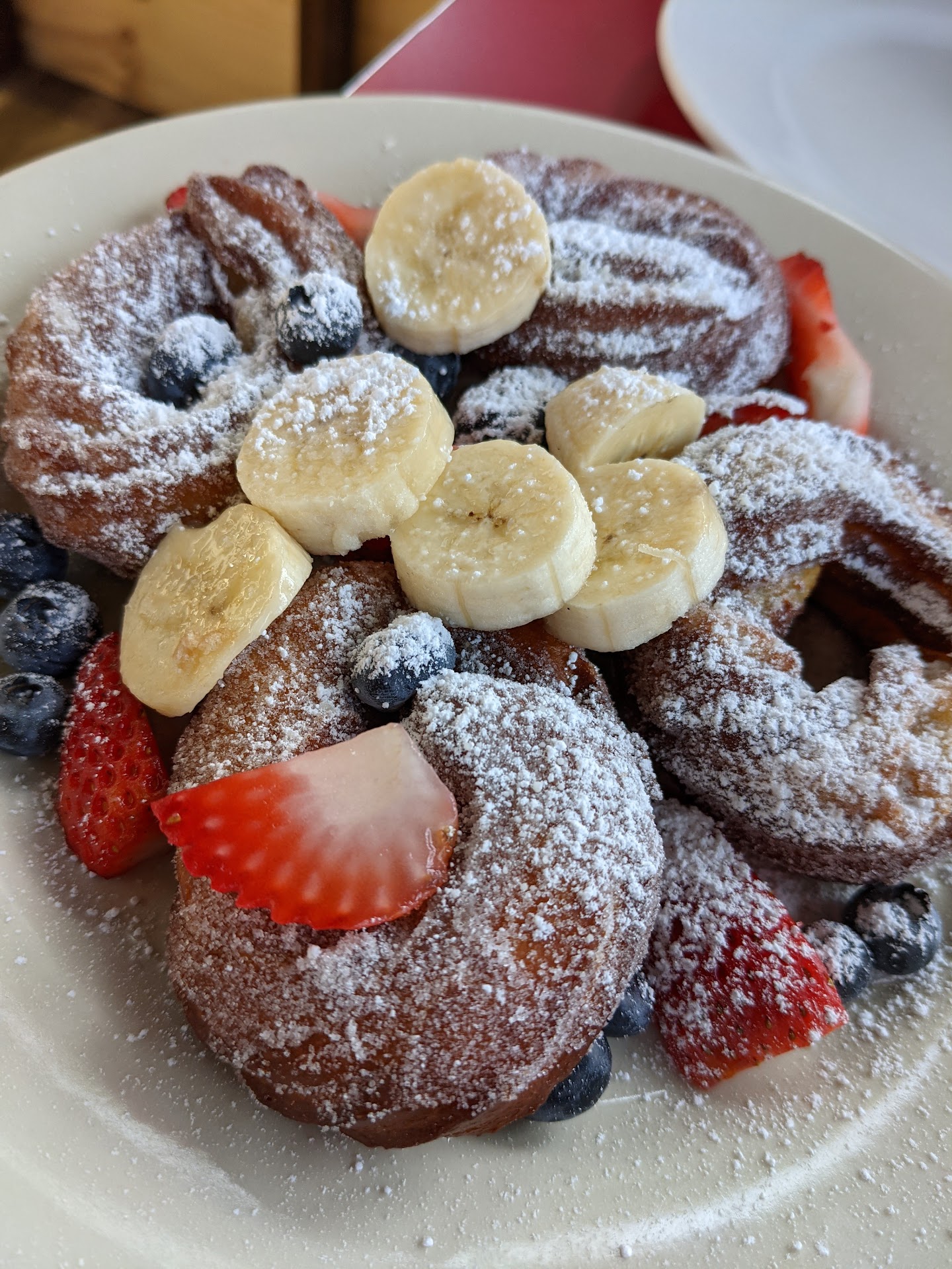Happened to be in the Outer Richmond SF and was ravished for a good hearty breakfast. Stumbled upon Hard Knox accidentally, and we got there 30 mins before opening, but the Manager, Susan, was kind enough to allow us to wait/rest in the sidewalk patio (helped me a lot because I have a mobility disability). While we were waiting, we were offered coffee which helped as it was a tad brisk this morning. Food: Amazing! Beignets: Not the typical, squared-off-beignets that you may be used to, as this looked more like a round'ish croissant, but it tasted just like a traditional beignet, and the outside crunchiness made it fun! As you can see from the pic, fresh fruits adorned the pastries. Great touch! Chicken and waffles: Crunchy on the outside, moist and juicy on the inside, full of flavor and in no way too salty or oily as in many places. Veggie omelet: Customarily, I'm a carnivore, but the ingredients - egg, spinach, mushrooms (ordered it with extra mushrooms), Swiss cheese (ordered it with extra Swiss cheese), tomatoes, onions - were so fresh, I devoured it in 10 minutes. The hash browns that came with it stayed crunchy on the outside, and soft/moist inside, throughout the meal. Grits: Typically, grits don't get a review, but these were very tasty and wholesome. Slather on some butter, and it was delicious! Plus: Before our orders arrived, Susan brought us some delicious corn bread baby muffins FRESH out of the oven. We were served four pieces, but I could have easily shoveled a dozen into my mouth -- they were that good. The place became fairly full within 30 minutes, with customers who appeared to be from the neighborhood. This resto is dog/pet-friendly, too, and they provide your fur babies with doggie water bowls. Absolutely a wonderful place to start your weekend! Thank you, Susan, and staff, for the...