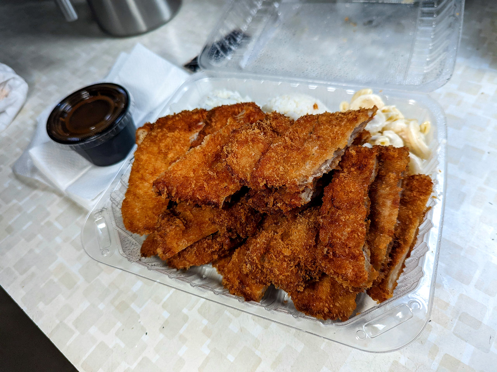 Original review: There's an obscene amount of chicken in their chicken katsu plate $10.50. They double stacked it in the container. This dish tasted OK. It needed the katsu sauce for it to taste OK. The little cheeseburger $3.50 was disappointing. It was missing regular cheese burger ingredients like lettuce, tomato and onions. This hole in the wall restaurant didn't have seating due to Covid, so to-go only. Waiting for your food on the street can be chilly so bring a windbreaker. Good job staff at...
