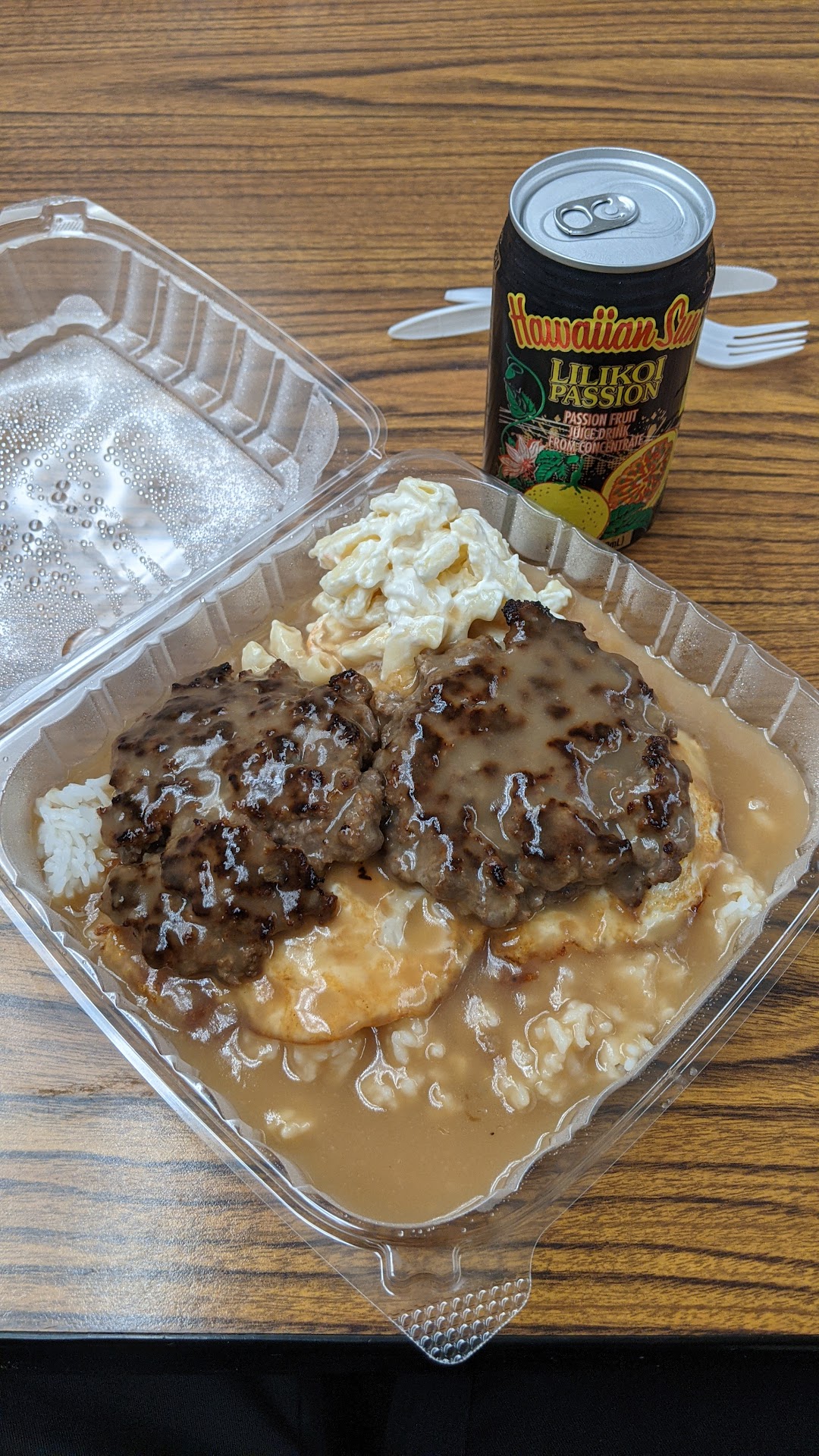It's delicious meat patties and eggs on a bed of rice, covered in gravy and paired with a side of mac salad. Simple yes, but you can tell a lot by the quality of the patties. The patties here are clearly ground meat hand formed in the back and seasoned well on the grill. The gravy, while not a kick in the face full of flavor, does do the job. Rice is not sticky or old. The egg was perfectly runny but unusually placed on top of the rice and not the beef. Maybe it was to not hide the showcased beef! Mac salad was dependable and delicious.