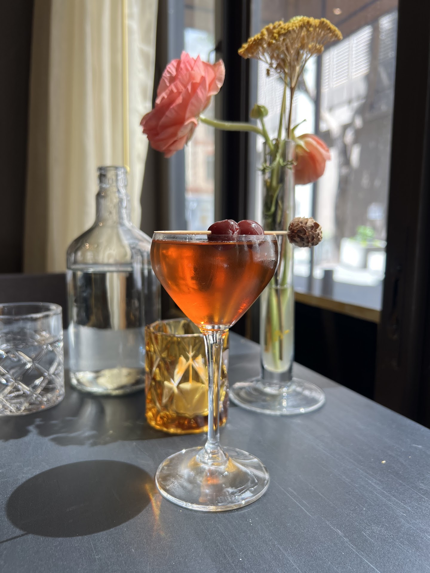 Ambiance is an awesome convergence of vibes. Brick & mortar, lounge aesthetics, wood accents and California florals all come together to create a solid environment for anyone. Music is upbeat but not loud to the point you can’t have a chat.