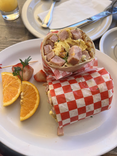 As far as price goes, we ordered drinks and two breakfast plates and it was reasonable. It was definitely worth it. My burrito was cut into two and I ate half and was plenty satisfied and full. Mine was a hash burrito which had hash browns, scrambled eggs, cream cheese, avocado and ham in a tortilla (see pic). My wife enjoyed her two eggs, crispy bacon, and pancakes. She always asks for her bacon “this side of burnt” but most places are afraid to get it right. This one didn’t quite get it, but they tried. Everything else was perfect!