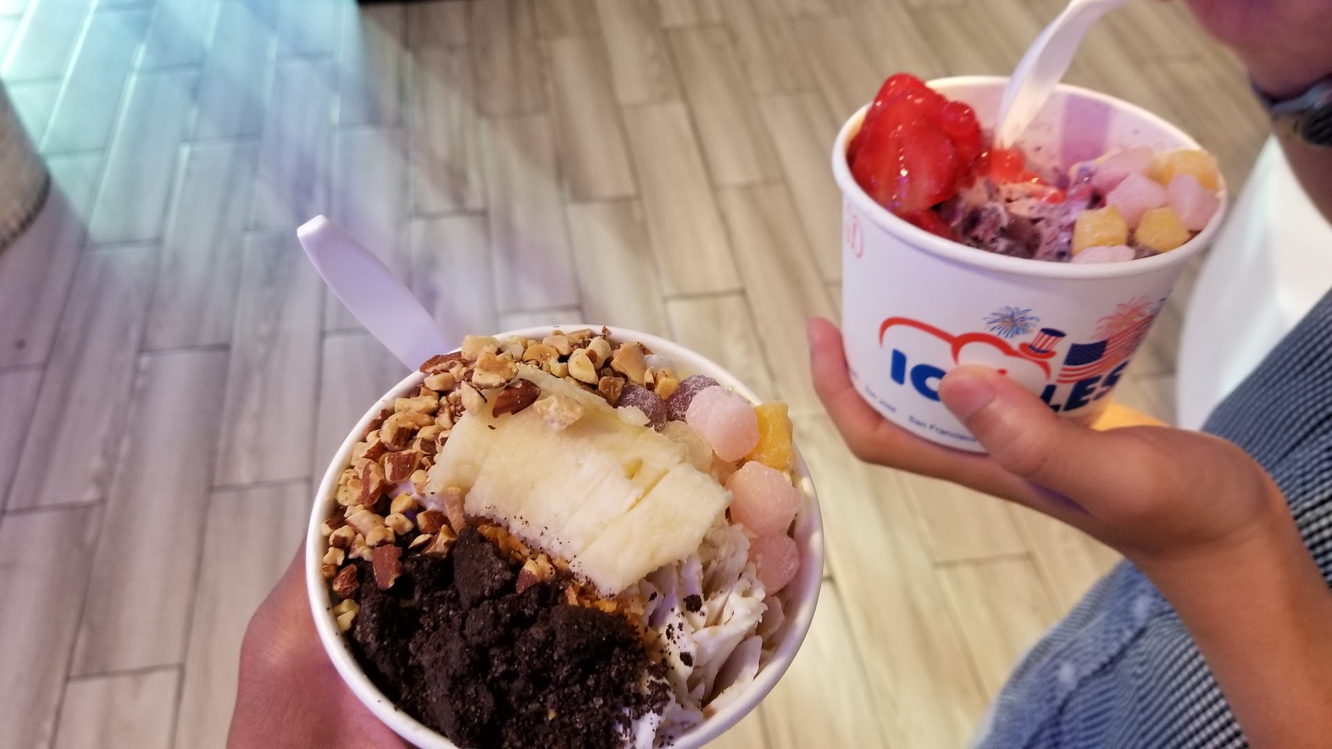 Ā Ā Ā Read moreGoing here was a real treat for me. I got the fruit roll-ups with strawberry popping boba, real strawberries, bananas, sprinkles, something called mochi I. Think and I can tell you this... It was delicious. I wanted to stop eating but I couldn't bear to put the spoon down. It was perhaps the most mouthwatering thing I've had in years. Unfortunately my curiosity didn't stop there I got a hot chocolate with marshmallows and mint Oreo crumbles. I left with a full stomach and a happy soul. It's not something I can do often but I will definitely be back. The employee behind the counter was very helpful and quite handsome. Check out icicles all summer long and get out of the heat for a delicious treat that's sure to tickle your taste buds. Don't forget to follow my account for more great ideas on an eventful day in...