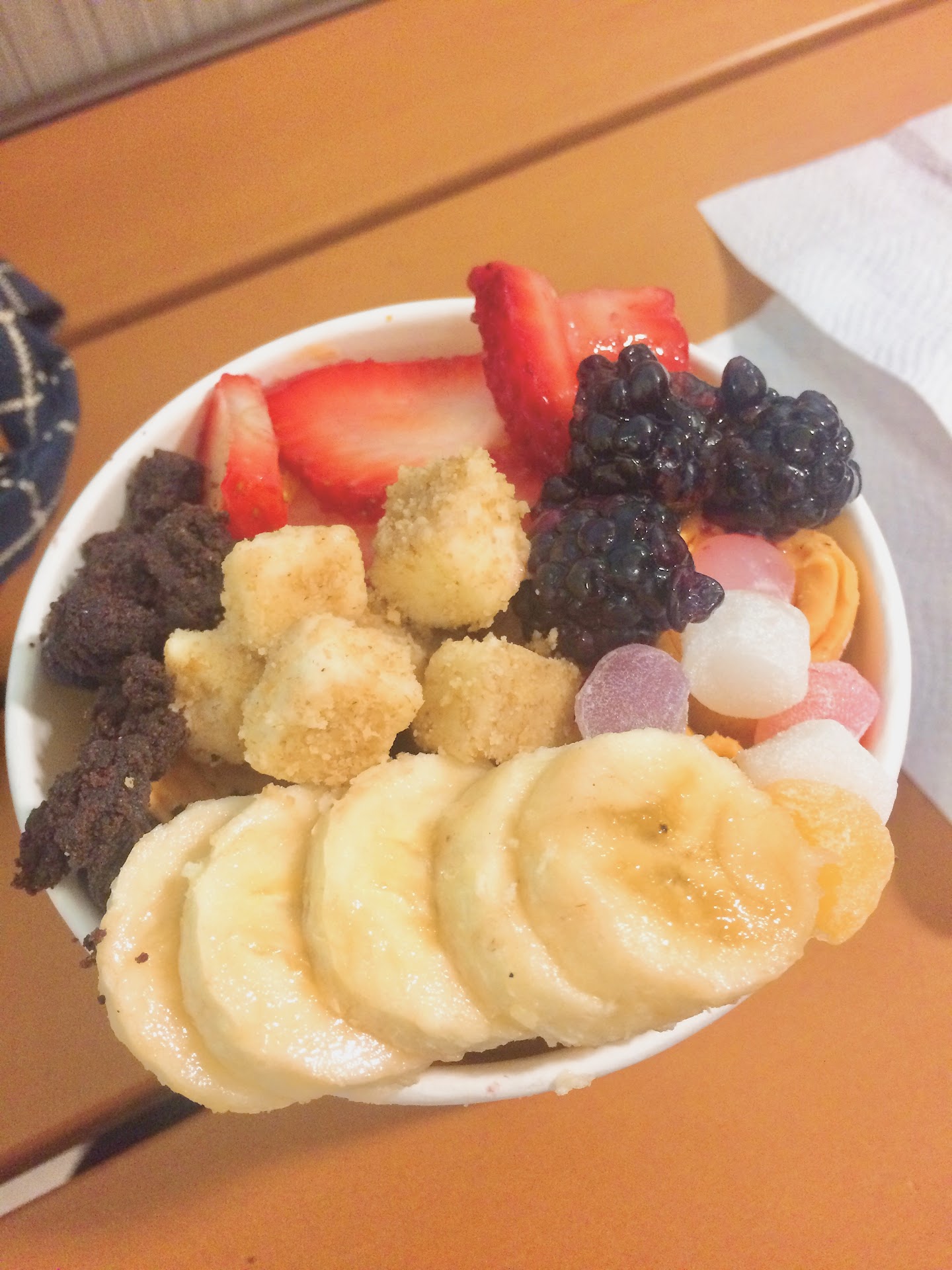 This is pure, delicious, smooth, creamy base (sorbet is an option too, but ice cream) that comes in many combinations to help you create something fantastic. We got the all fudged up. Then, there is a then, you get to enjoy watching them add the basic ingredients and freeze up your ice cream rolls. It's a good amount that my husband and I split. Finally you get to add from an abundance of toppings. Take advantage of that. We added toasted marshmallows, whip cream as well as Nutella, white chocolate, and caramel drizzles. This is in my top three ice cream places. Smitten is delicious, amazing, but it lacks what I love with my ice cream which is bits providing a change in texture and added flavor....