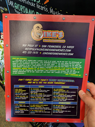 After every few months I think "I sure do miss the Ike's in Redwood City, maybe I should give the Polk St Ike's a try." And then, when I do, they get some aspect of my order wrong, I don't go back for a few months and the cycle continues. This time was different. I ordered a vegetarian sandwich with everything except tomato and add fake bacon. After getting home and performing surgery on my sandwich, I decide this time I'm going to call the place to let them know so much of my order was wrong. The manager, after finding my order, let me know that they ALSO got the specific sandwich wrong and all the supposed fake meat was real. While I appreciate that he refunded my order and offered me a free sandwich, I've learned my lesson. I don't expect the free one would be the first correctly made sandwich I order from this location. Whatever it is I missed about the Ike Franchise, this place...