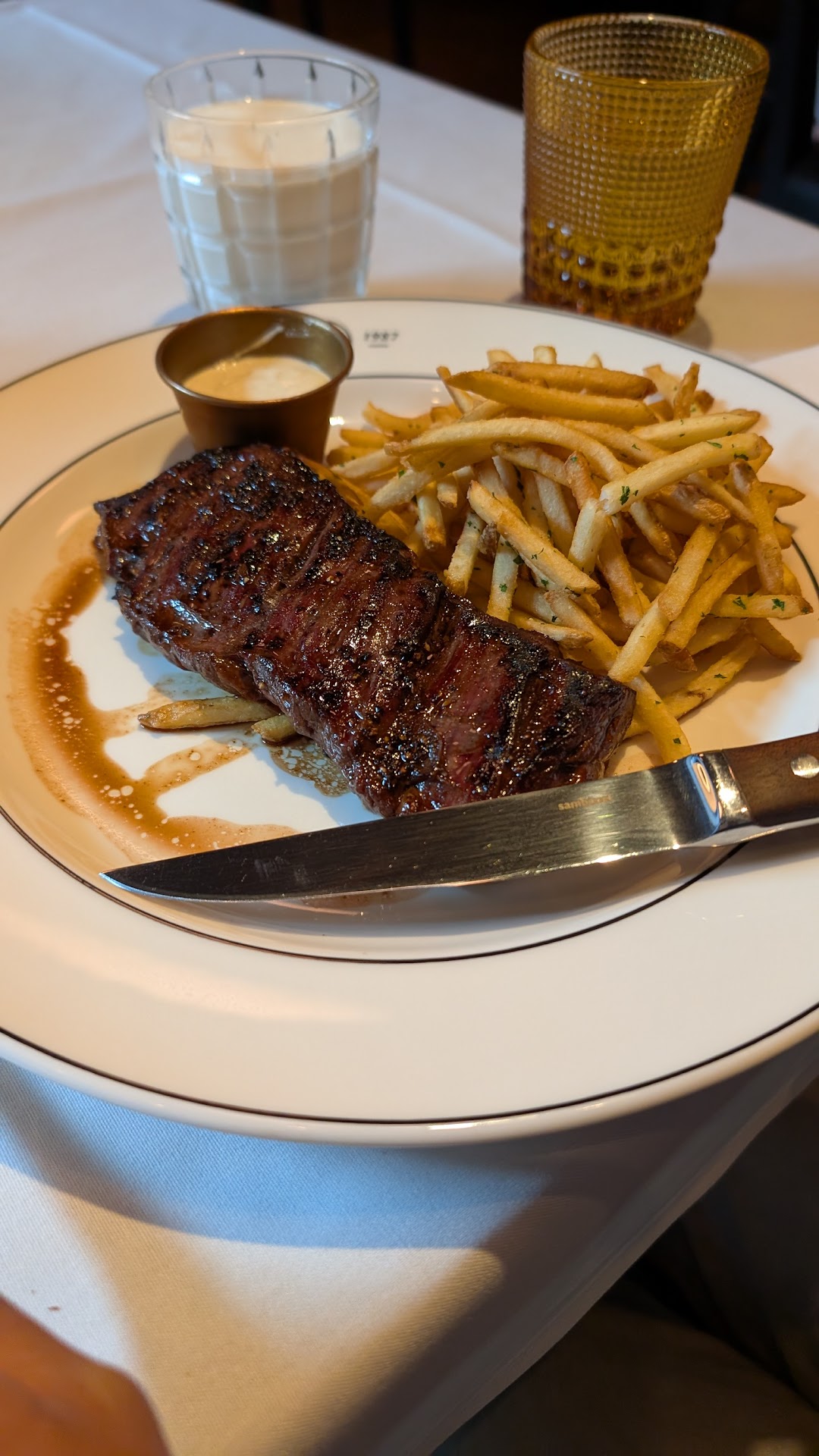 The food was okay. My steak (New York Sirloin Steak) was cooked exactly as I had requested and it was a huge cut of meat. The entrees also come with two sides, so overall you get quite a bit of food. I was definitely FULL when I left. Nothing stuck out to me though. I'm not sitting here thinking how delicious my steak, creamed spinach, or house potatoes were (recommended by our server as the most popular items).