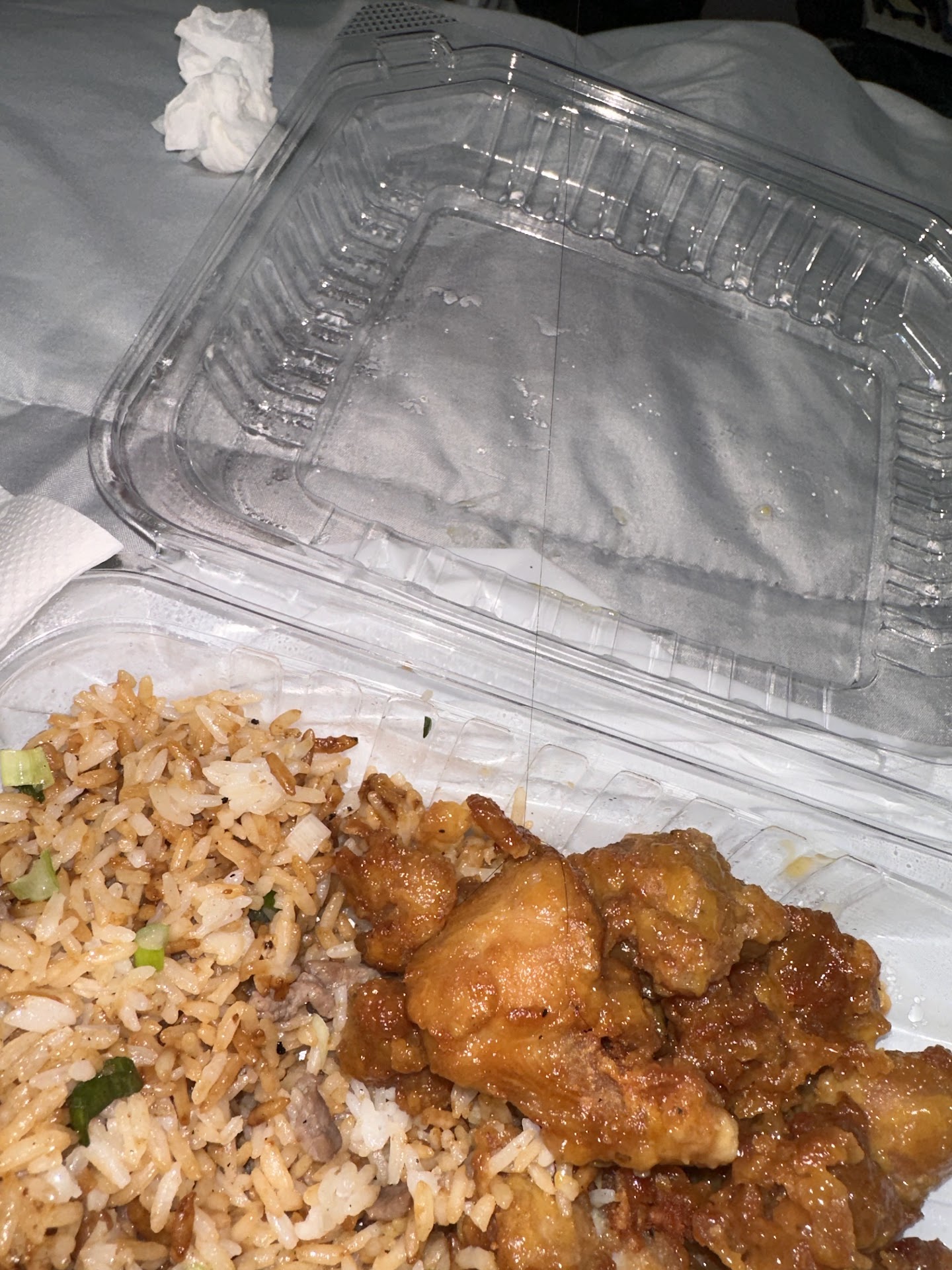 It was a good portion, but I was not a fan of the rice. Very saucy / oily and it was only fried with green onions; maybe I should've asked for veggie fried rice or something.