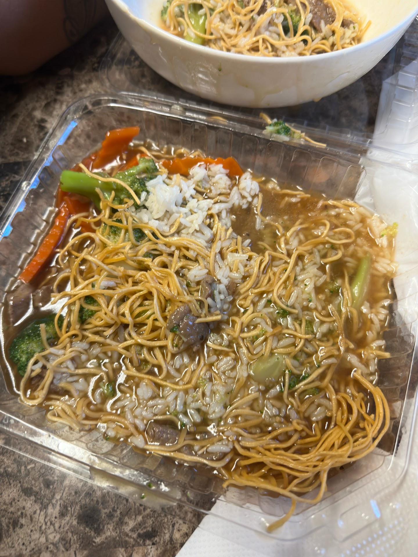 Upon picking up my food and returning home, I eagerly dug into the pan-fried noodles, only to be met with sheer disappointment. The noodles had a watery consistency that was far from appetizing, and the taste was completely bland and unremarkable.
