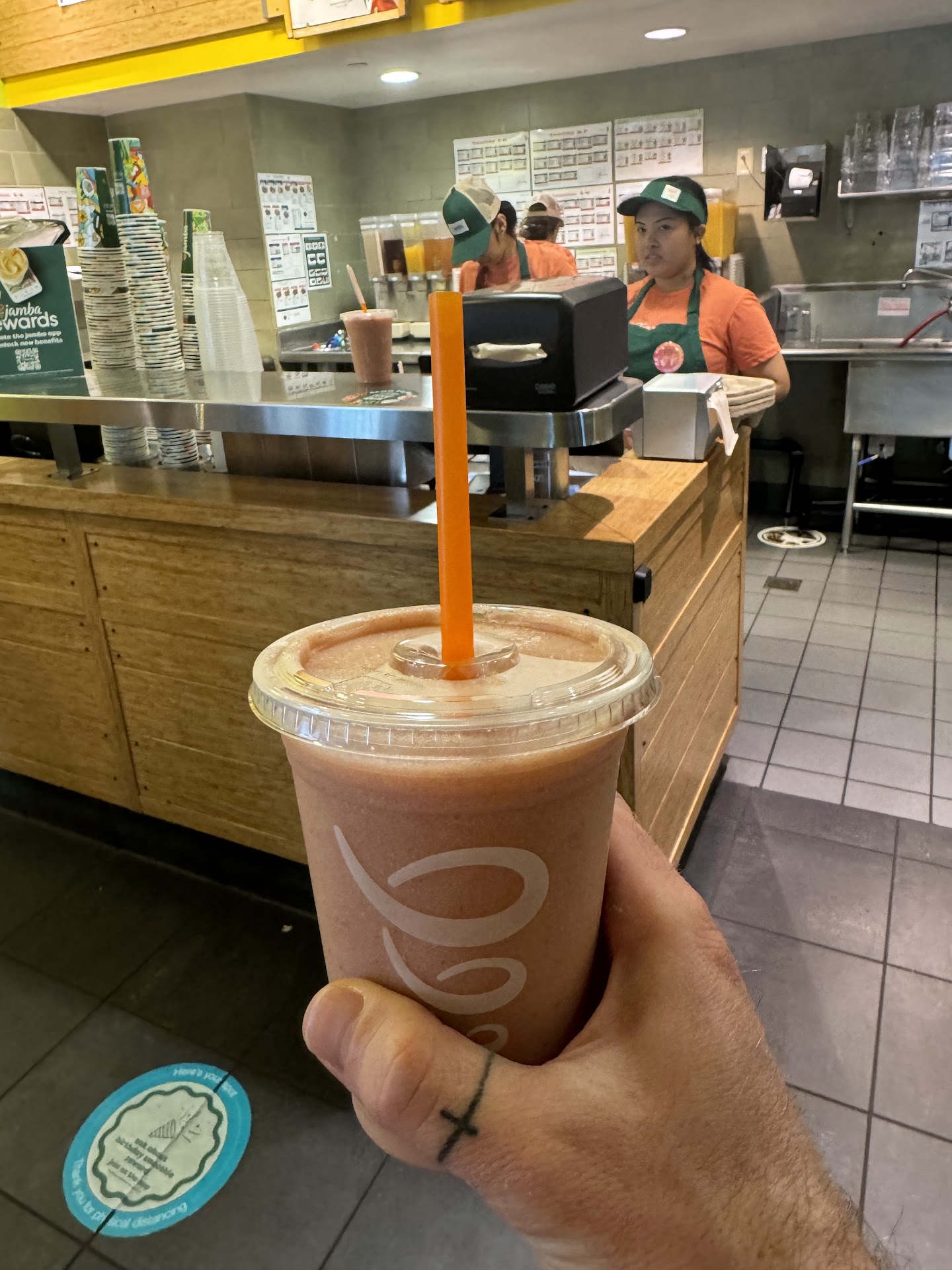 Read moreTypical jamba juice experience but either there is a markup at this location or the cost of the drinks have gone up! 10$ for a medium smoothie is very high. May as well get a burrito. The drinks are good though and the staff was friendly...