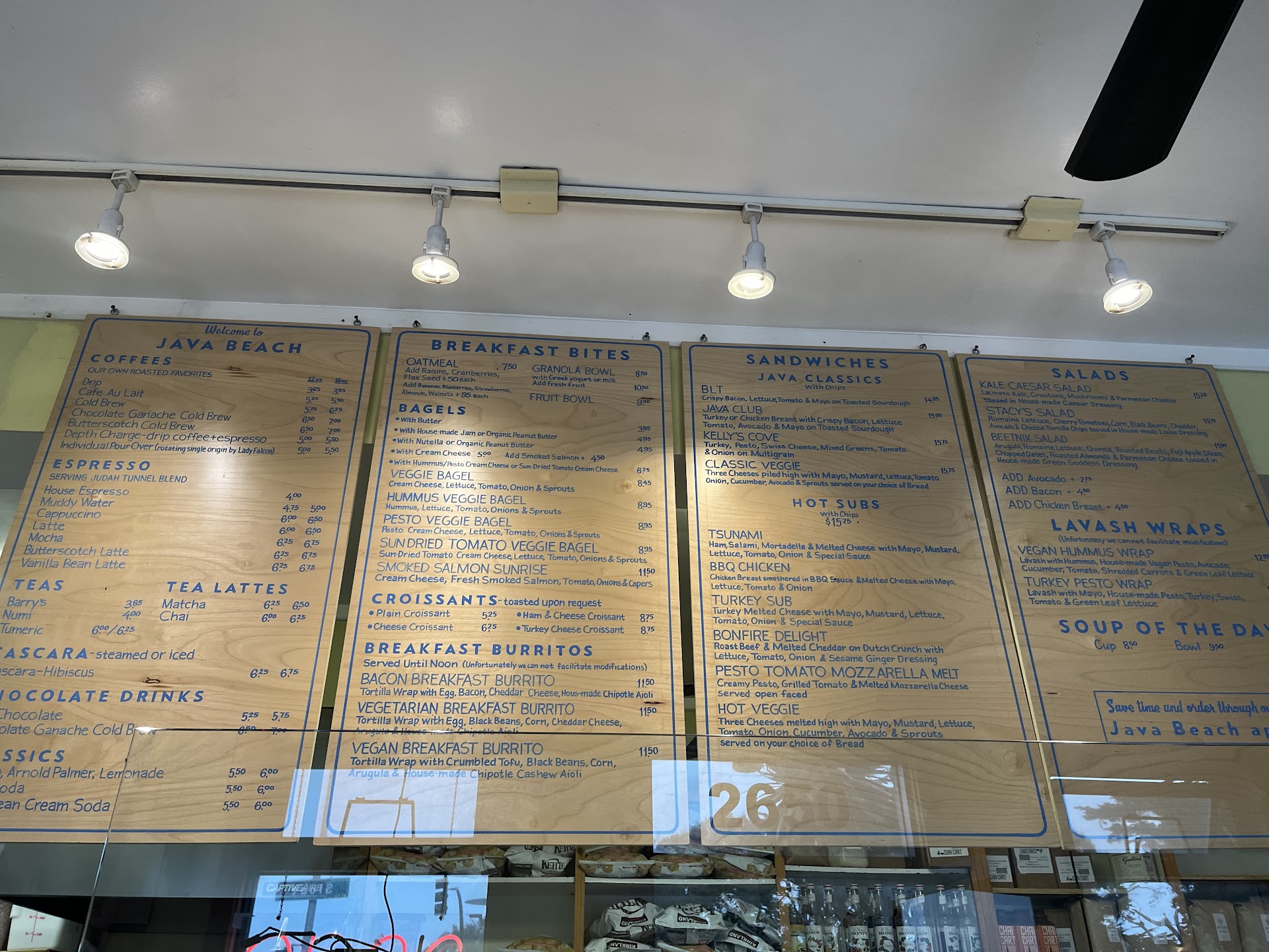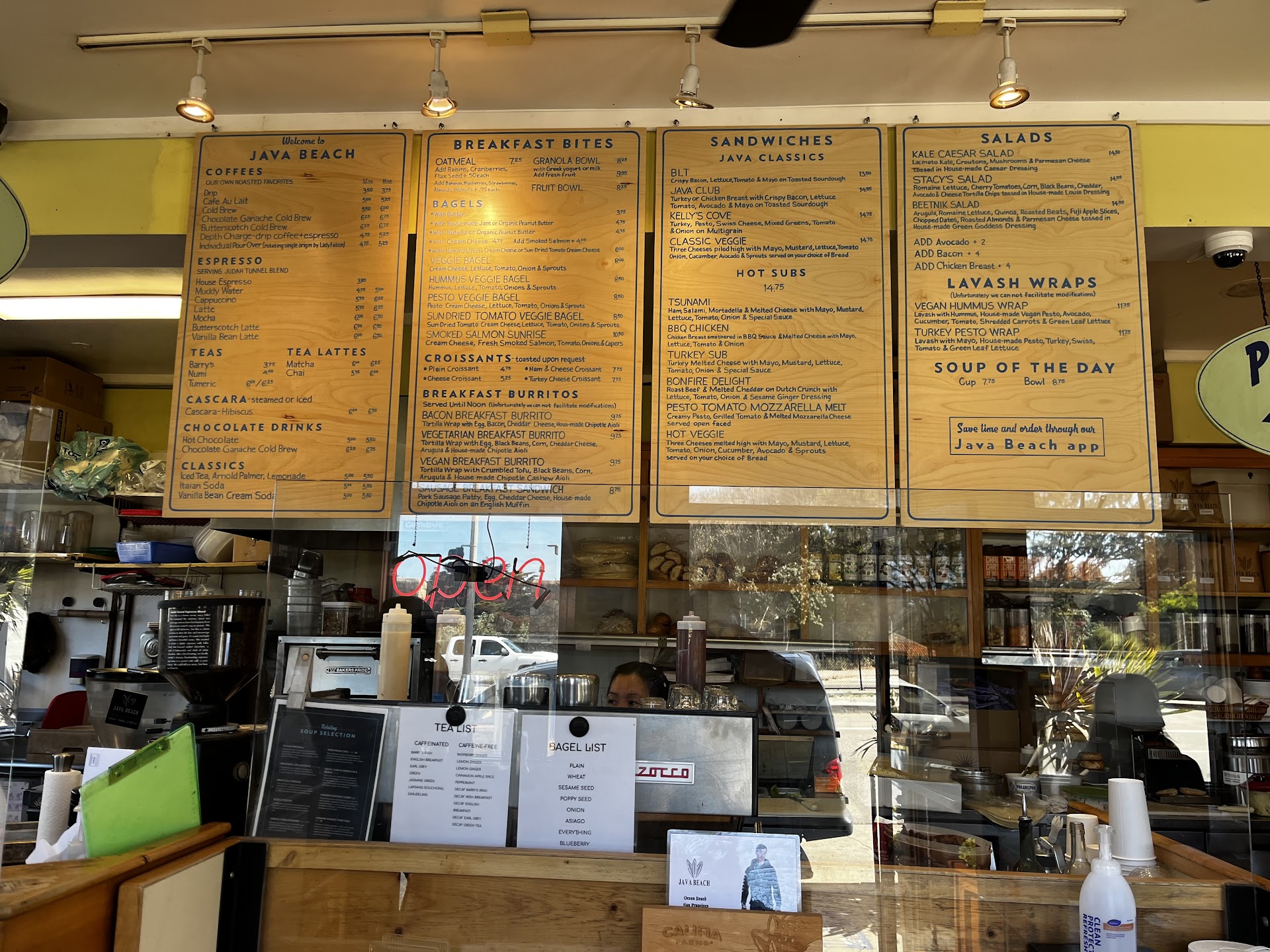 Went to Java Beach on Sloat. Incredibly rude cashier working at 3pm today. Did not catch her name... When I ordered my food, she was very snappy, dismissing and not informative. I asked her about soup choices and she pointed at a board and said tomato soup. Then continuously asked, “ what else? What else? What else?” 3-4 times. When I sat down a customer next to me had some other type of creamy white soup... so apparently there was something other than tomato soup. As I was drinking my coffee, I heard her complaining about homework assignments behind me. Towards the end of my meal, I asked her for a to go containers and she requested one of her male coworkers to assist me. Again, dismissing me and not letting me finish my sentence. Since I did not finish what I was initially asking for, she did not hear me say; I needed a to go coffee cup. I had to ask her again, and she responded; “for what?” I have worked in the cafe industry for years, I understand the balance of personal life and work can be tricky. However, letting a “few papers to write” impact your ability to give good customer service is ridiculous. Your the face of the cafe. At least pretend good customer service. Food...