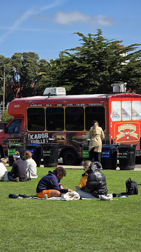 Gyros, falafel, cheesesteaks & Mediterranean salads from a cable car-themed food truck.