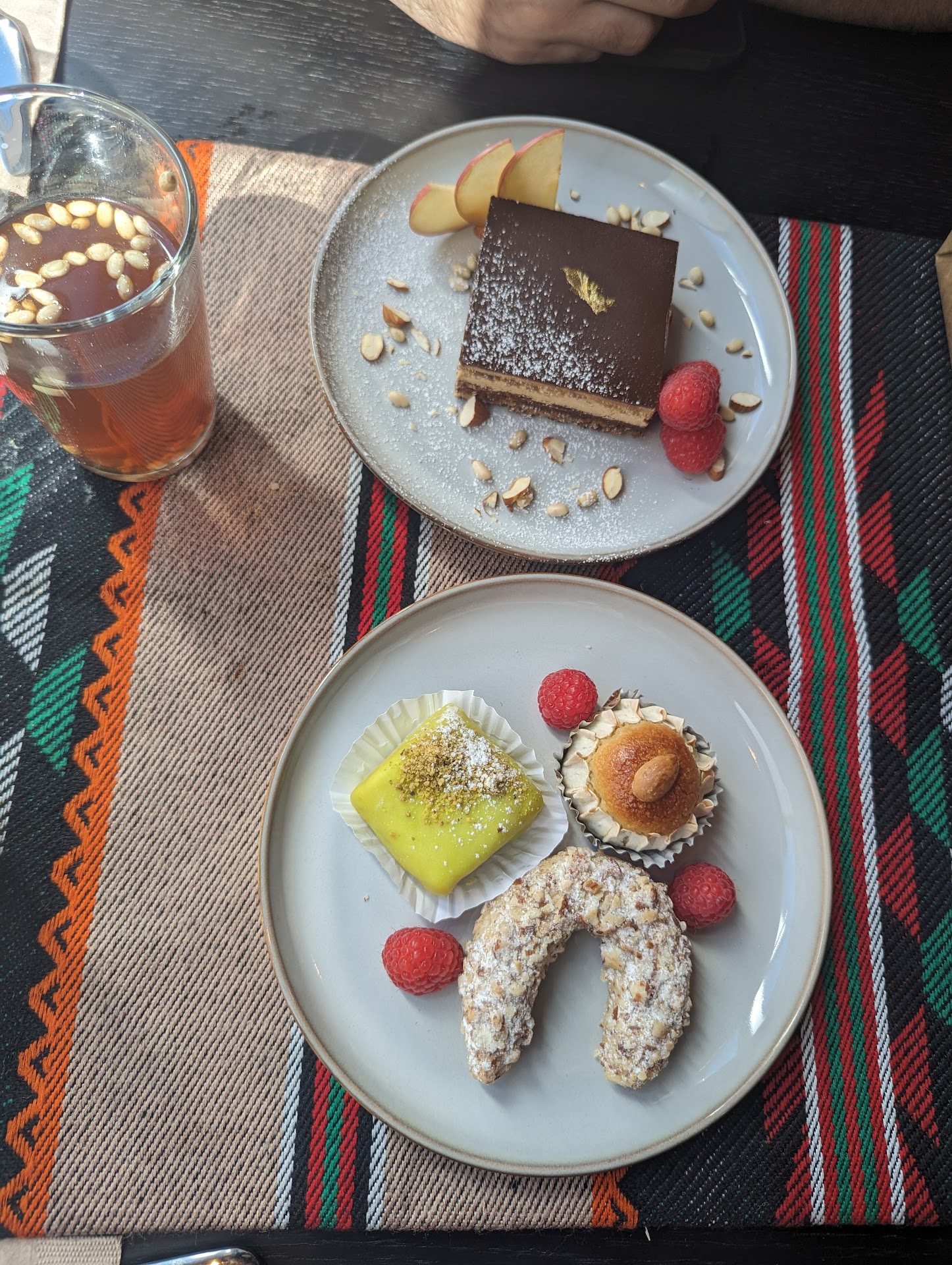 To drink we had this refreshing lemonade. And my favorite was this tea with pine nuts! We had dessert too, which was traditional. By then we were so full we only had a few bites of dessert but took it to go to finish.