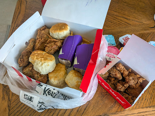 Original review: Since the Daly City KFC closed, I've been coming to this one. When I order through the web site or the app, the food is ready by the time I get there. I live about 10 minutes away. Today's order was the $20 fill up box. It is four pieces of chicken, 12 nuggets, fries, four biscuits and sauce. It is enough food for two meals. The chicken was OK but the fries were not. They were soggy from the condensation of how the box is made. There are no air holes for the chicken and fries to breathe. The chicken and fries weren't crispy because of it. The biscuits were OK, but they didn't give...