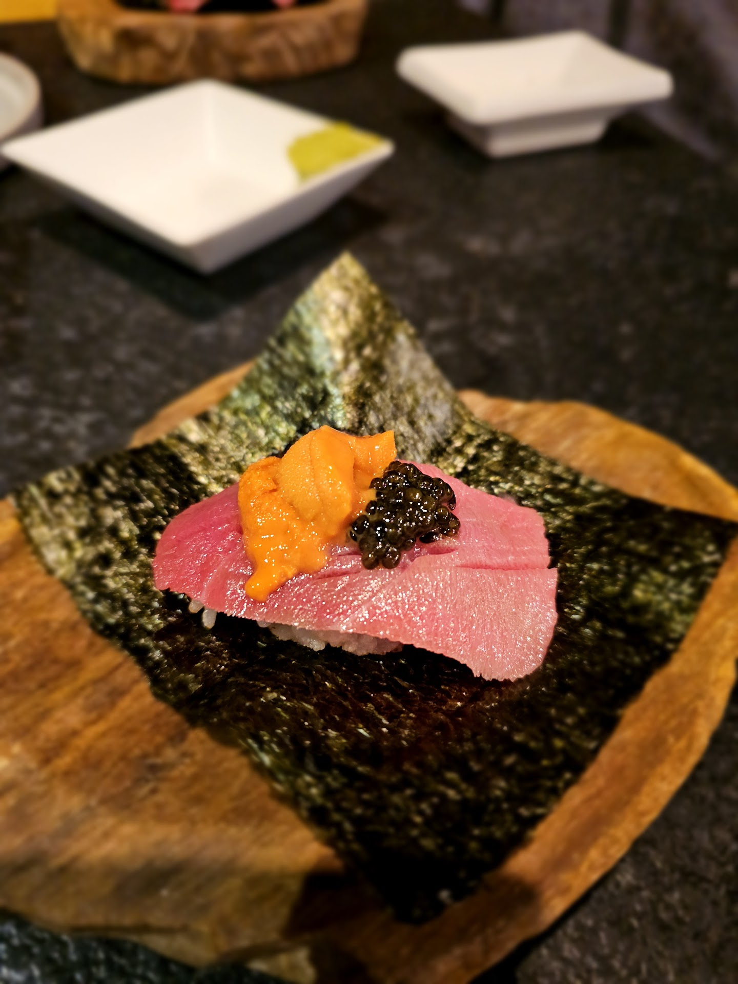 Course overload (in a good way): The $158 omakase was certainly generous, offering a plethora of dishes. The whole experience consisted of small plates, nigiri pieces, sashimi and a dessert.