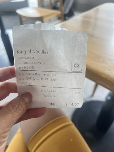 Read moreI hesitate to write this review, because I don't want a line forming in front of my favorite restaurant in SF! Hear me out.. you aren't going to find a better priced and better tasting noodle shop that makes all noodles and dumplings daily, without all the crazy IG phone takers crowding up the place instead of actually eating what they are taking a picture of. No, it doesn't have a lobster head or beef bone sticking out of it... But if you want authentic noodles with an aromatic spicy savory simmered for days broth, tender beef and fresh choy spicy beef noodle soup, this is your spot! The dumplings are also quite good. Also, for a little extra indulgence try ordering the deep fried onion pancake and dipping it in your soup 😋 not great for vegans...