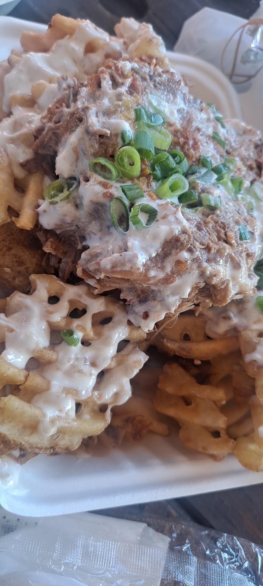 We love looking up drivers dive in and dive restaurants but this one was confusing for me. The burger that is with teriyaki beef and hard rice buns is distasteful and extremely difficult to eat. The rice buns are really hard and have a consistency of a rubber sponge. The meat was very good but the concussion together is displeasing. The waffle fries were cold and lacked topping. Again the shredded meat was decent but nothing to rant about. I do feel that the meat is filled with lots of flavor and maybe over a rice bowl with sauteed veggies would be good but these 2 items were...