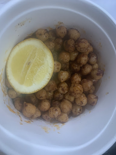 Sumac roasted chickpeas - Comes with a slice of lemon. Light and perfectly spiced. Sumac doesnât overpower.