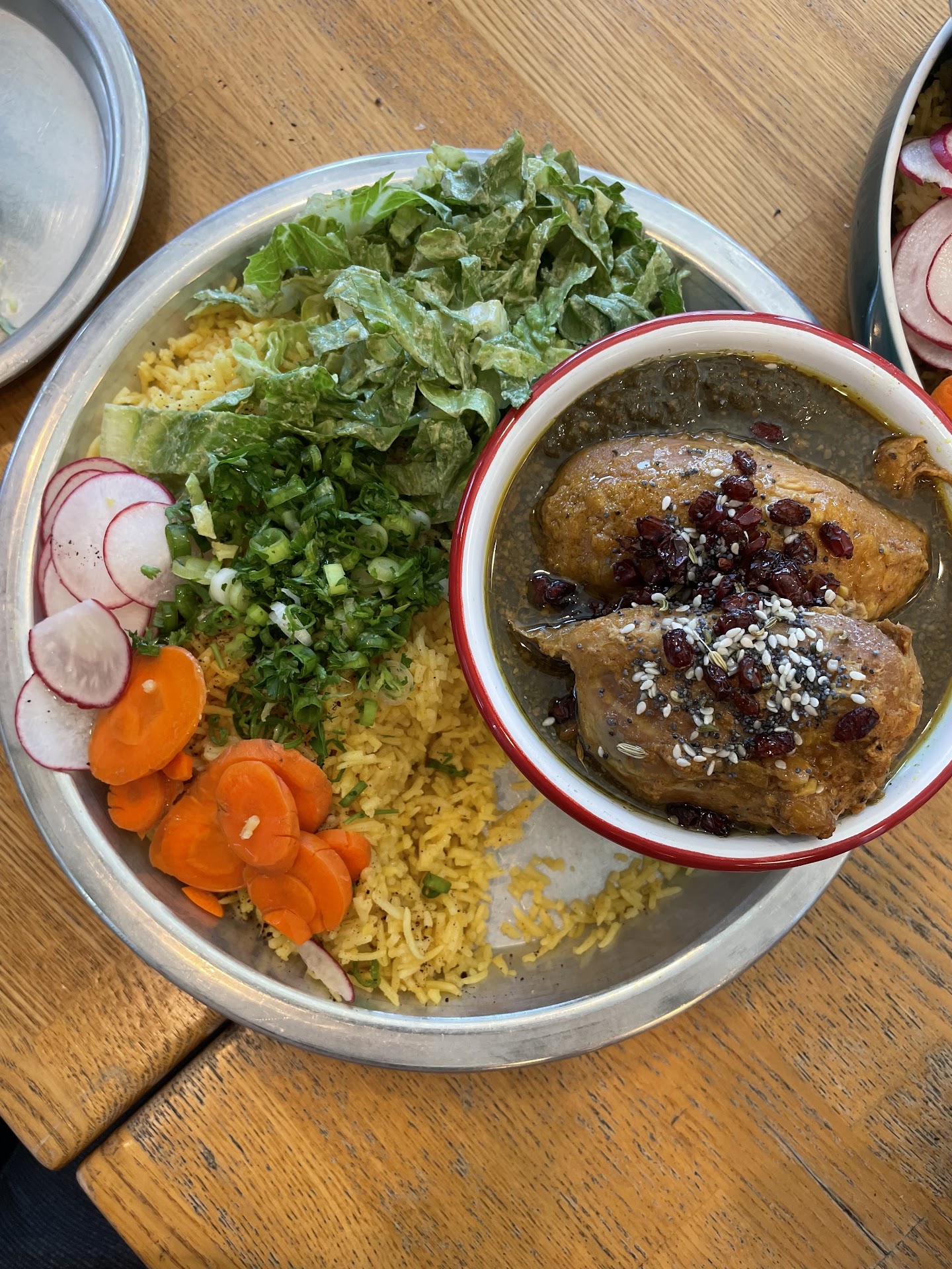 Read moreThis meal underwhelmed. Itâs started out strong and ended with both heavily over salted and under seasoned entrees. We got two glasses of frankly over priced Armenian Red wine, not sure what constituted the $25+ a glass price tag as I lack any real knowledge of Armenian wine. The Mazze platter was the highlight of the meal. No comments other than the bread should either be served crispy or untoasted. It was somewhere in between chewy and crispy, odd choice. The entrees really fell flat. We got the Salmon Belly(stay away), which was pretty close to inedible. It was the saltiest thing Iâve ever eaten. My idiot husband ate it as a challenge and is very much regretting the choice. lol. Canât emphasize enough how salty the dish was. To be fair the host mentioned that it was a salty choice but that was a very big understatement. the beef stew, was okay. However the sauce was thin and watery and could have used some more time simmering. The beef was cooked well. Dare I say this dish could have used salt? The rice was over cooked to boot. Service was good until the entrees, then it seemed the server avoided us in anticipation of our disappointment until weâd reached the point of no return and dropped the check. Will not be returning. Super bummed by the experience. This Persian does...