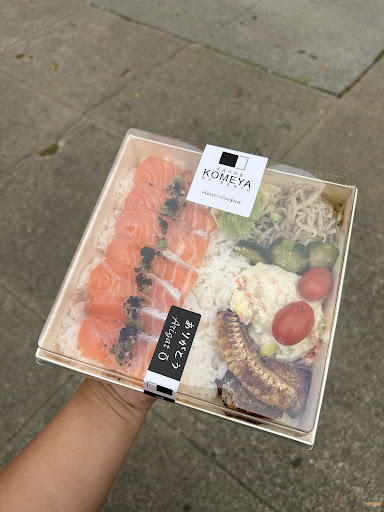 Read moreThis is the beautiful, most well-presented to-go bento box I have ever seen in my life đ This specific box was the Salmon In Truffle Soy, which was Norwegian Raw Salmon in truffie oil and house made yuzu soy on a bed of yummy sushi rice, Japanese potato salad, roasted grape tomato, deep fried sweet corn, pickled cucumber, and beans sprouts! The salmon was soooo delicious and fresh, and it was just the right flavor! It wasnât too salty or fishy, and the texture was just right! The side dishes were great too! The corn was actually really cute, but I didnât flip it in the picture to show itâs true beauty because I was in a rush haha It was really interesting because it was a piece of corn with the skin still firm and together, which Iâve never really eaten it like this before, and it was pretty cool! Honestly, itâs really nice to see a place put extra care and attention to their placement and presentation even though the food is packed to-go because literally no one really does that and everyone just packs food in those basic styrofoam/plastic containers :P If youâre curious, the box was like, a really really thick paper material or like a light kind of wood hehe It was pretty high-quality for to-go food! The matcha here was also really good and high-quality as well! It had a rich flavor, and it definitely is on the top tier level of matcha! The sea salt foam was perfect and was milky! The mango syrup at the bottom tasted really fresh and authentic too! I waited about 30 min in line, and another 20 min for my order haha so just be patient! Make sure you have a good parking spot too because some people attempted to park right in front of the shop thinking it was going to be a quick trip đ If youâre curious, the 2 boxes and 2 matchas were a little over $50 haha Overall, this was such a nice experience, and the workers work very hard to get all the orders out! Even though they closed at 6:30pm, there were still 20-ish people outside in line, but they were gracious enough to take everyoneâs...