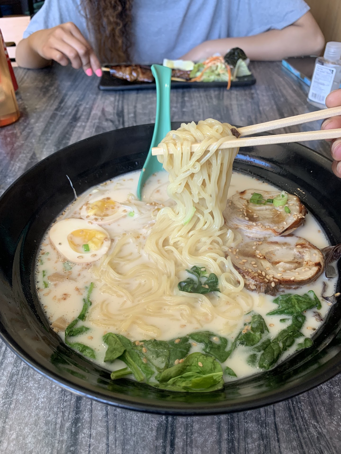 The menu was very crunchy and tasty, but the reality turned out to be worse than expected. The food was not tasty. And all. we ordered ramen first, asked for a spicy midium, it turned out to be very VERY spicy, I couldn’t even breathe, I choked and began to cough for a long time. The ramen was also sweet. We ordered two different sushi, it turned out to be a salmon skin, this is the worst thing we have ever tried. The skin overpowered the taste. we decided to order another set of sushi, but they were also not tasty. In the end, what we got: three sets of tasteless sushi, sweet and super spicy ramen. bill 105$. The sushi was very expensive and also not tasty, would not recommend this place. For all the time, the waitress came up once and asked if everything was all right, only when I asked for the bill and she brought it, she said “is everything all right?” and after when I gave the card for payment and she brought the bill, the waitress spoke...