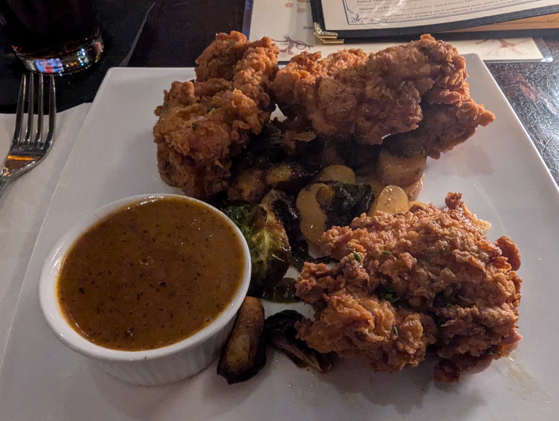 Came here on a whim on Saturday to watch the last half of the Warriors game with a friend after feeling a bit too claustrophobic at the Tap Room. Surprisingly, there was still plenty of seating with patronage that were a lot tamer. We ordered a mix of HH items and an item off the regular menu.