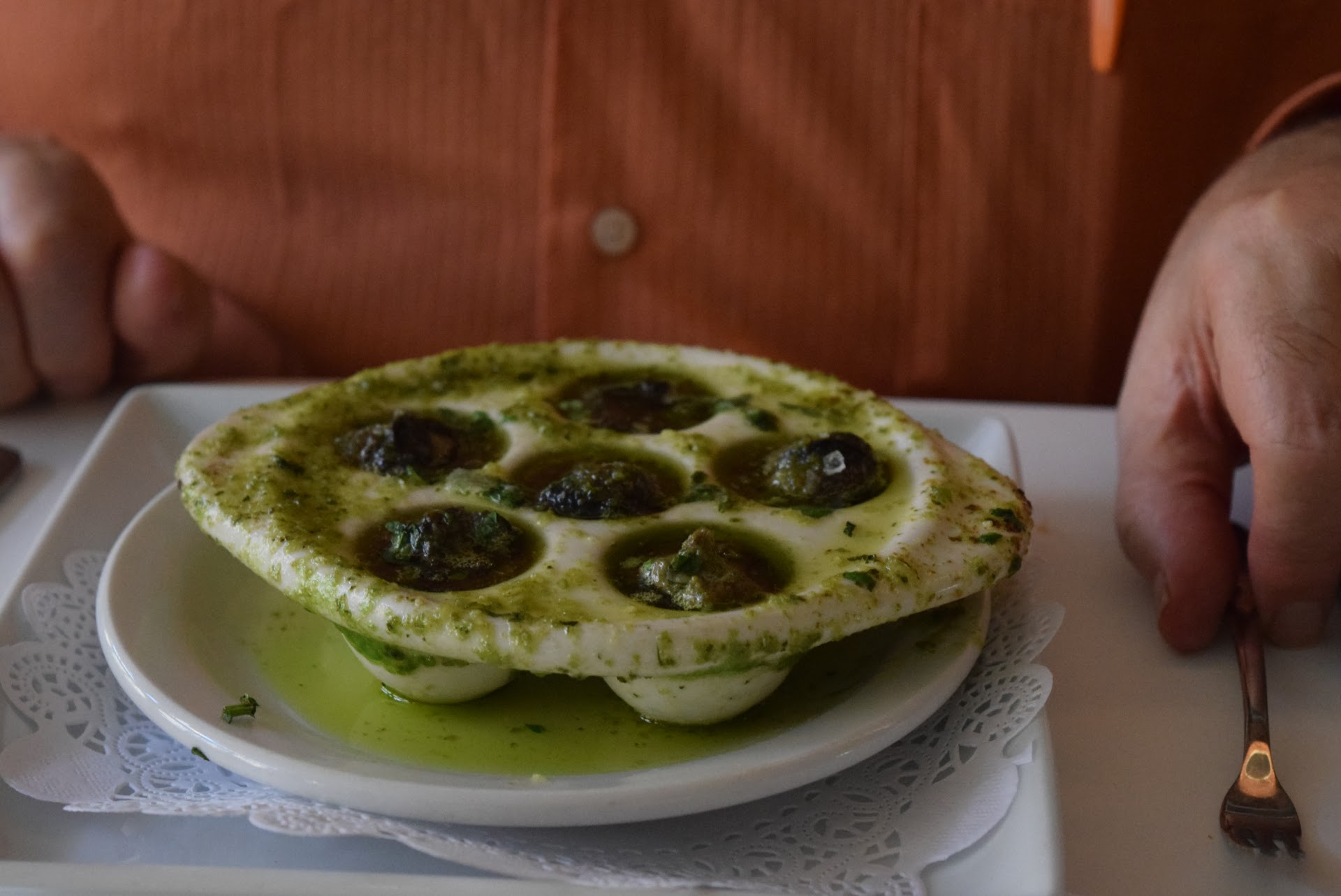 I went for L’escargot bourguignon – snails in garlic butter topped with shavings of toasted cheese. The garlic richness of the butter was perfect for the meaty chewiness of the snails. I used plenty of bread to mop out the butter after I'd eaten the snails.