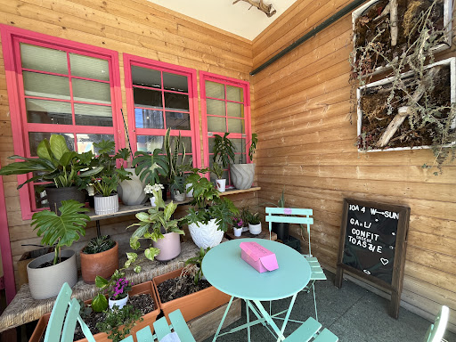 Read moreWas delighted to discover this refreshing indentation off Mission Street that presents itself as a picture perfect alcove splashed with decidedly doll house raspberry pink details pressed against natural wood planks. The vibe is almost backyard bake sale with pastries displayed on plates propped up on a large table such that you’d expect to see lemon meringue pies, bundt cakes and maybe even toll house cookies, but instead there are high end Francophile goodies including seldom sold canelés. Their potato galette was an unexpected take on a tarte au pomme but as a savory offering was particularly tasty. The scones, a raisin cranberry and a ginger cheese were hearty, especially large, and glazed to create a nice balance of crunch and crumble with spots of intense flavor. The offerings change daily depending on artistic whims and current market availability of special ingredients so can’t wait to get back and check out what new...