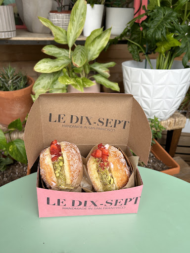 At a Sunday event in the Mission, an acquaintance showed up with a big pink Le Dix Sept Patisserie box of pastries. He didn’t share :( The pink box itself put me on an alert. A bakery I hadn’t tried yet (!)…I scurried over asap and found this super cute shop on 18th St between Mission & Capp Streets. All their goods looked photo worthy, but taste? I found the day’s camomile & kumquat cake slice to be pretty. The cake itself was very dense and heavy. Very disappointing. However the yummy butter cream was bright and citrusy. I also bought two cookies. The cardamom chocolate chip which used some alternative flour (it seemed). The cookie was dense and chewy. Okay. The other was a matcha coconut cookie. This was the winner of the bunch. Moist and chewy with a pale green color. It’s what a cookie should be. I suppose Le Dix-Sept is a gluten-free or wheat free patisserie since the baked goods I tried had different than norm textures and little sweetness (less sugar?) in their cookie or cake bases. I’m open to all but high priority for me is flavor. 3 Stars for flavor 4 Stars for ambiance 4 Stars for service If alternative baked goods are what you’re looking for or need, here is a...