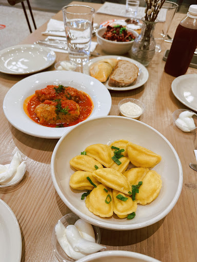 The food itself was extremely disappointing. The borscht tasted nothing like the real dishāit was watery, flavorless, and reminded me more of dirty dishwater than soup. There were barely any beets in it, and it didnāt even come with the traditional slice of rye bread that is essential to the meal. The vareniki (both potato/cheese and chicken) were equally badābland, rubbery, and unappetizing. They lacked the freshness and flavor you would expect from homemade dumplings.