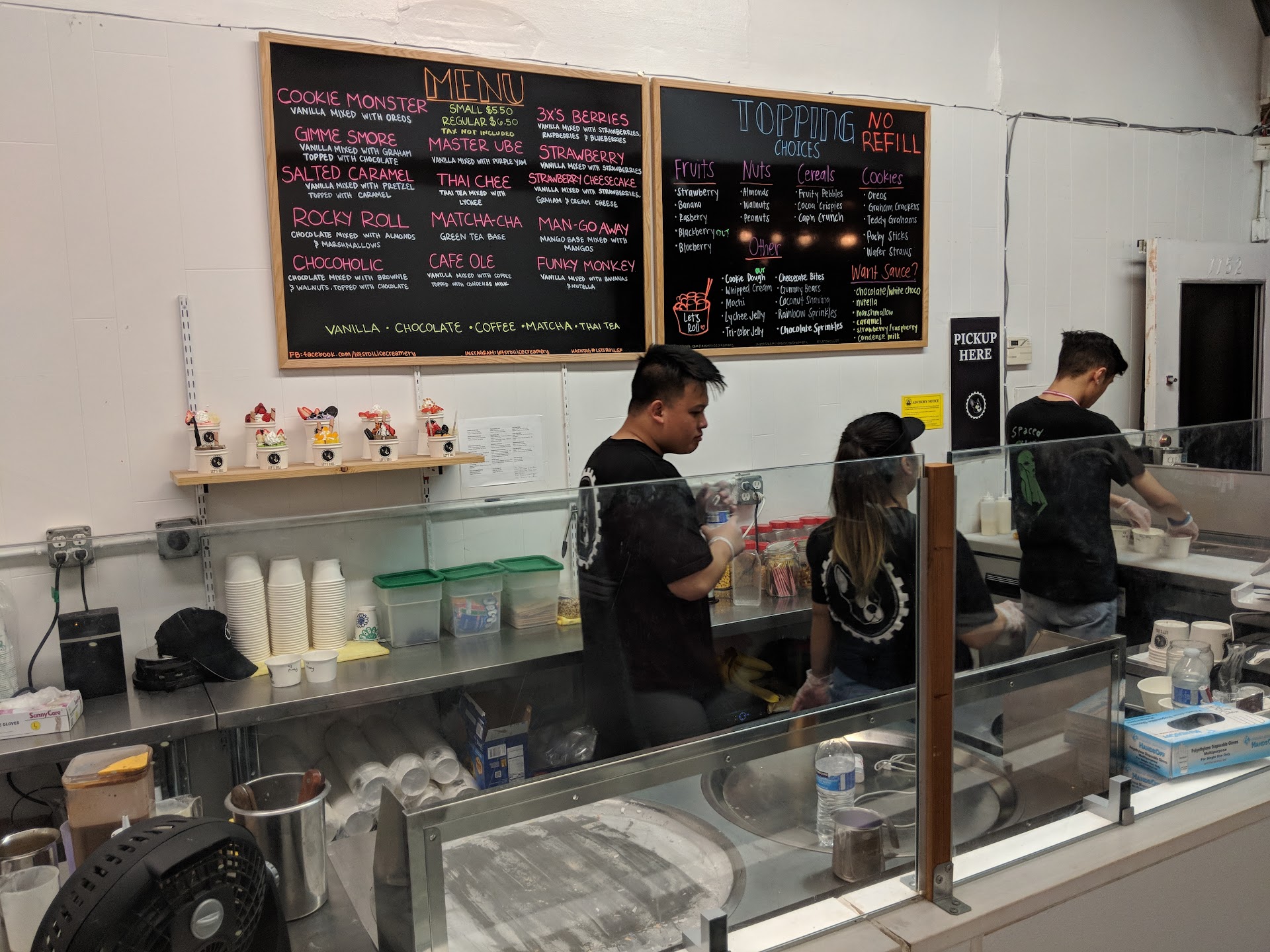 Read moreIn a world where artisan ice cream shops are locked in an escalating battle for the most gimmicky flavor (nacho ice cream is a thing, I assure you), one shop has turned their back on the flavor bloodbath (literally, in the case of bone marrow and dried cherry) and focused their energies on technique to bring in customers. Yes, they have the requisite odd ingredient (purple yam, anyone?), but what really makes everyone press their face against the glass at Let's Roll Ice Cream is how they make the ice cream. Watch as the wizard employees throw a splash of cream and a couple of ingredients on a super cooled surface, mash it together, spread the concoction out flat, and then turn it into a series of nifty rolls with deft strokes of metal spatulas. It's mesmerizing. It's magical. And, frankly, really fun to eat. This is a great place to bring kids of all ages, though be prepared to wait if there's more than a handful...