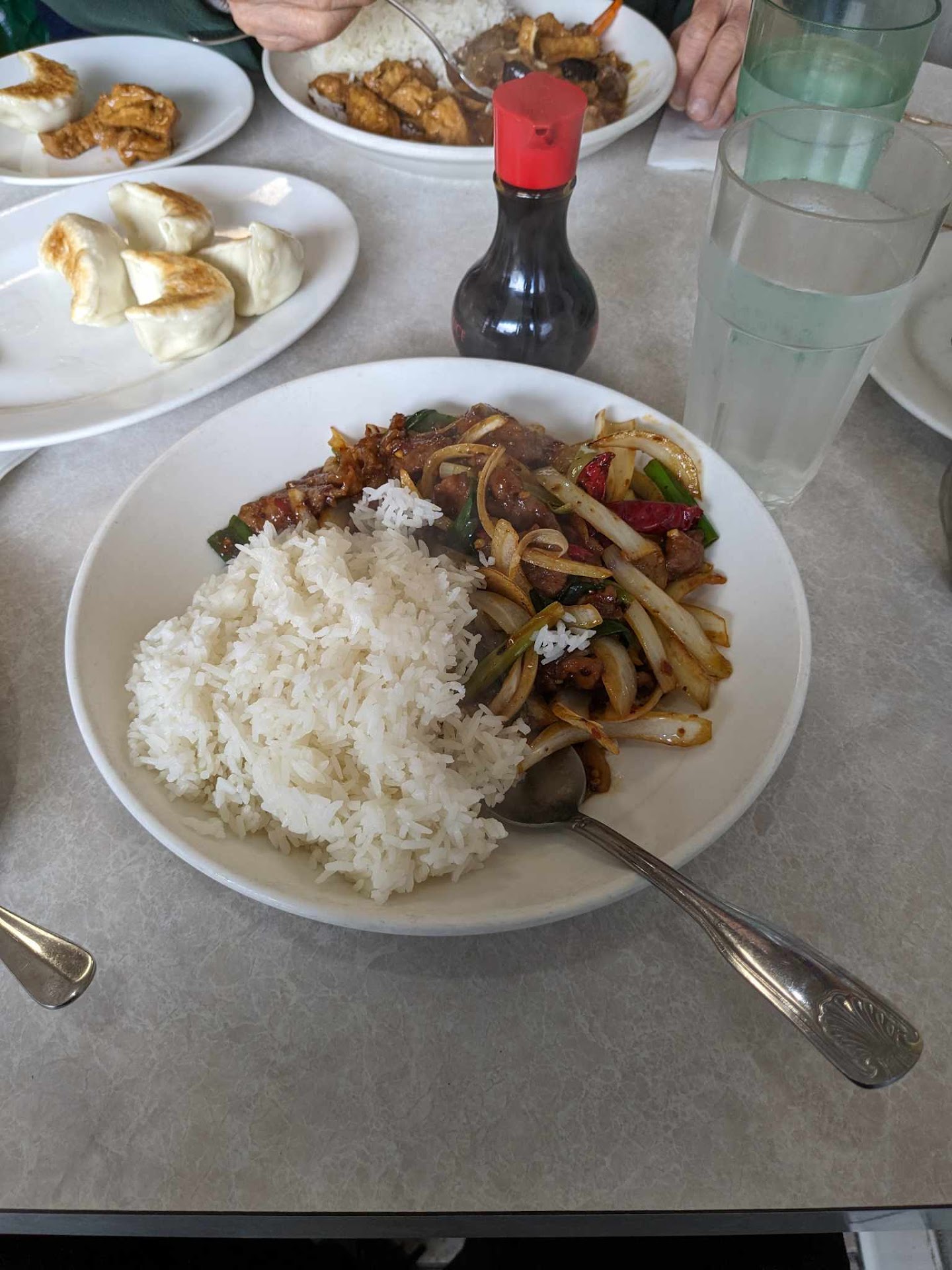 My mongolian beef lunch dish was good/OK but I found myself looking for beef under all the onions. I love my onions...but since it's mongolian beef, I expected more beef than onions!