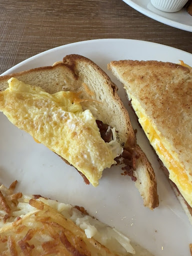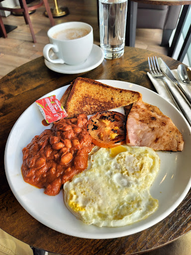 Must have been an off day for them or something. They were absolutely slammed. Waited over 10 mins but nobody came by to take my order or offer water. Had to wave at the staff several times before someone came over, who looked very stressed, to take my order. I get it, they were packed and under staffed, but even just a smile or acknowledge of how busy they were would have gone a long way. My drink took over 15 mins to arrive, and my food took over 30 mins. My latte was very watered down, almost like sugar water. I ordered the farmhouse breakfast. The toast was a limp soggy mess, and the ham was overly salty, dry as the desert, and hard as leather. But the worst parts were the grilled tomato slices and the beans. The tomato slices tasted really bad and really bitter, no idea why it would taste so bitter? The beans had a thick marinara sauce (like thick pizza marinara sauce). Tasted gross honestly. Not once did anyone come by after taking my order to check on me. No offers to refill the water. Overall, it was absolutely terrible. Never ever coming back here again! No idea why it got such...