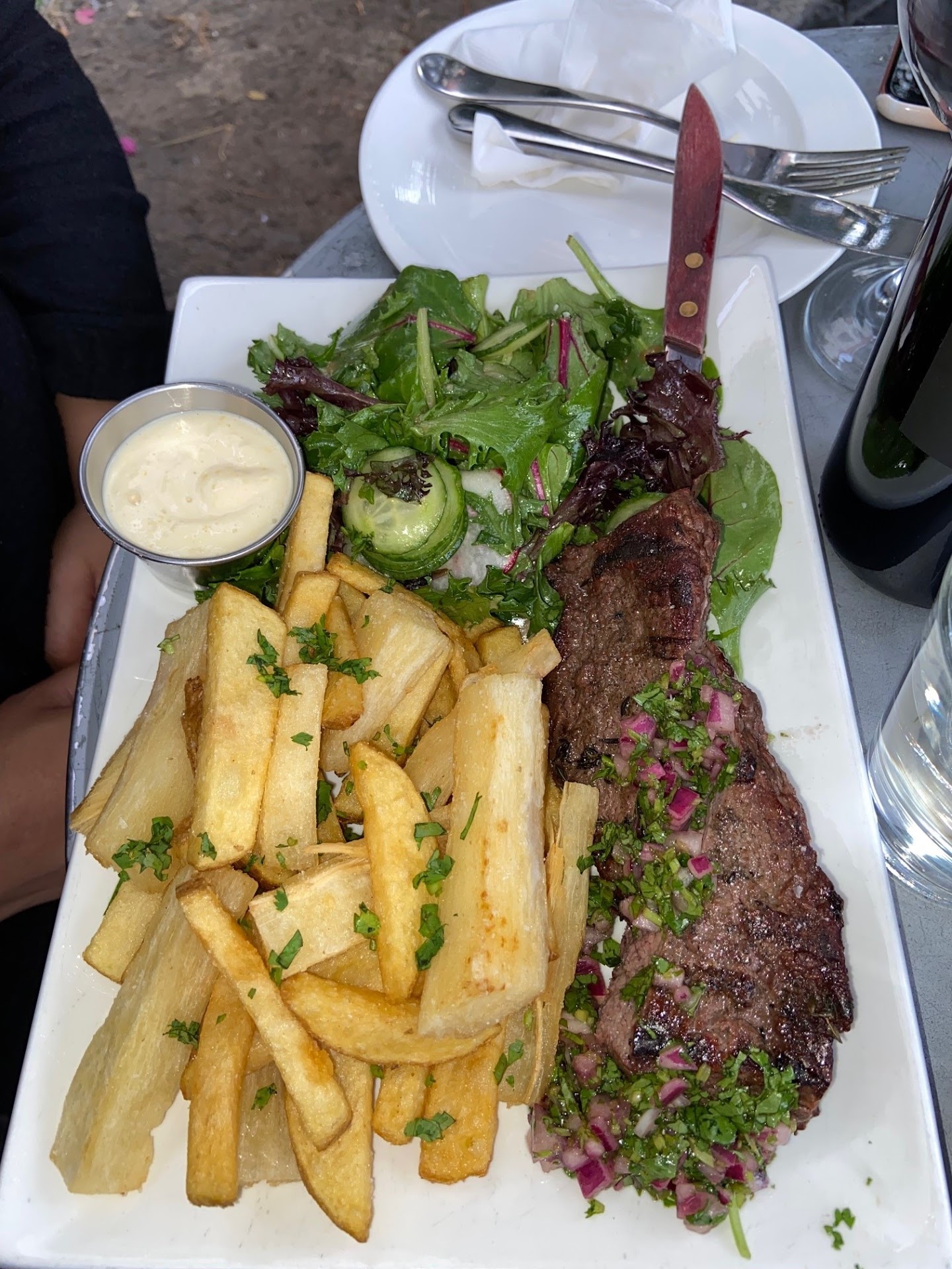 Steak: astounding yuca fries and super tender, impeccably cooked steak