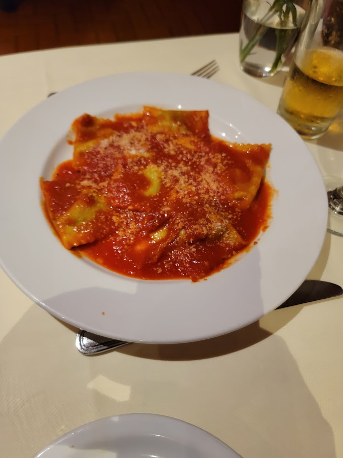 The menu is pretty simple, but everything we had was very good. Bruschetta (not pictured), Ravioli and the Bolognese (both pictured) were outstanding. Price was reasonable and the serving size was just right (enough to be full, but not miserable).