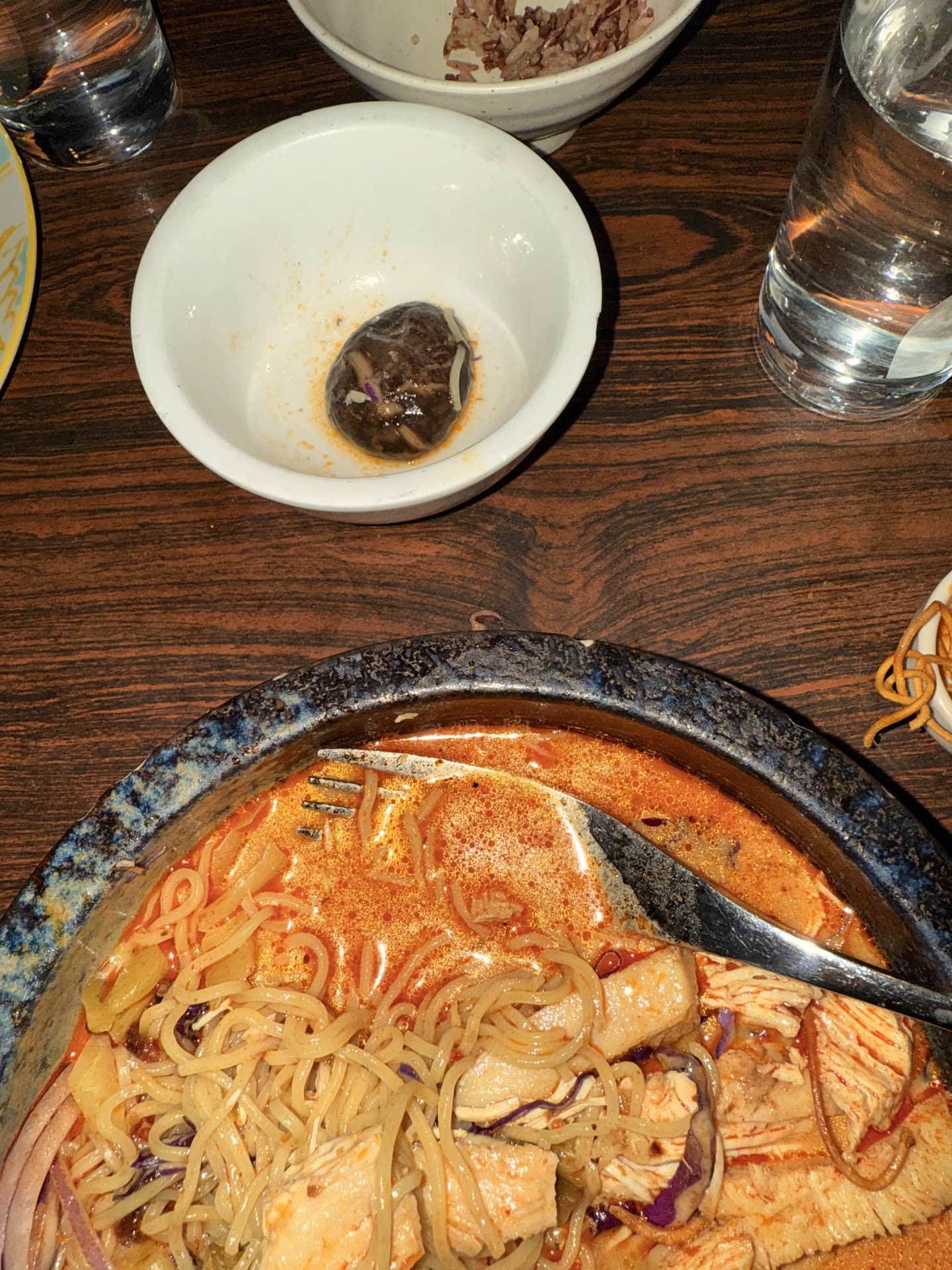 Second attempt: I went back, clarified my order (with the prawns, please), and they confirmed it was the wrong soup. Got the right soup and left.