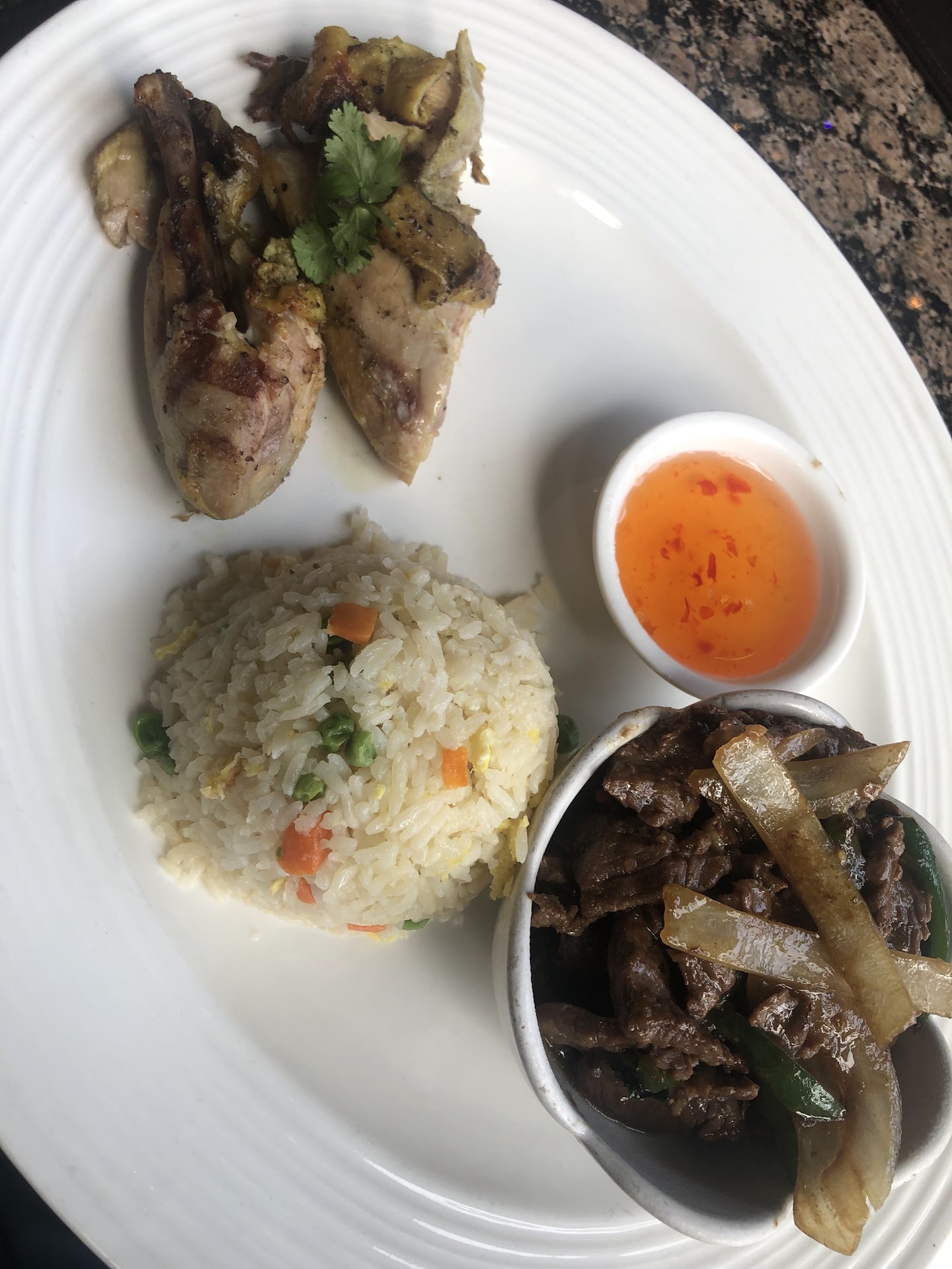 Read moreFirst time trying this spot and I came during lunch time. It’s a spacious restaurant but somehow it feels kind of cozy. I ordered the two item lunch combination which comes with a side of Tom kha soup which was flavorful and aromatic, perfect for the cold weather. For the two items I got their grilled bbq chicken which came with two drum sticks that were marinated in primarily lemongrass, I thought the flavor was okay, the portion is on the smaller side and I wish they charred it more. The other item I got was the sliced beef in a salty savory sweet marinade, this one had a much more bolder flavor which goes perfectly with the fried rice they give you. I think for the amount of food you get it is a little pricey but I was...