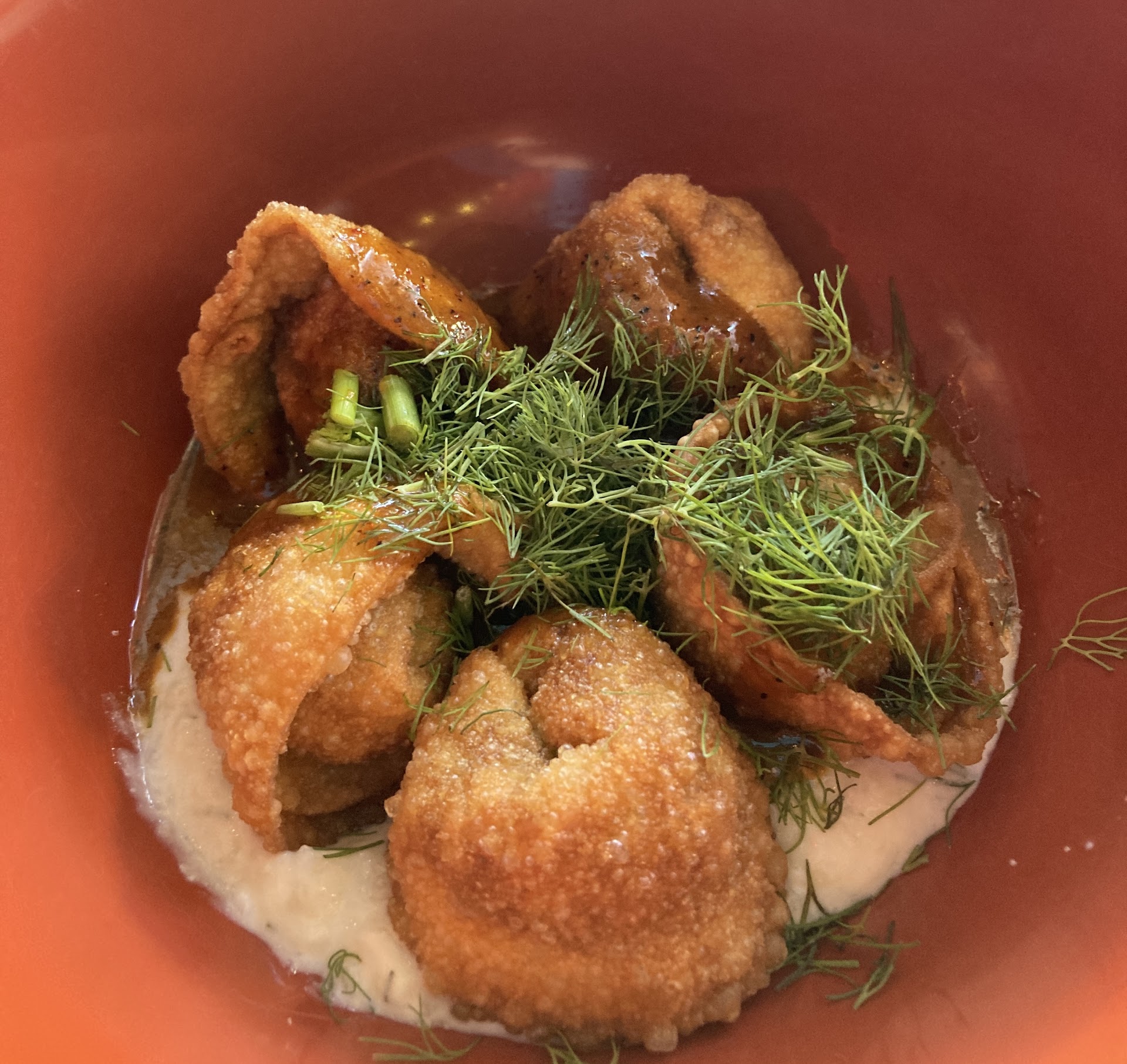 Lamb Dumplings might have been our fav, felt like the most complex flavor and was a fun fusiony Mediterranean-East Asian crossover, almost reminded me of Nepalese momo’s ?? The fennel laden tzatziki-like sauce mixed with a soy based sauce ?? Heaven!