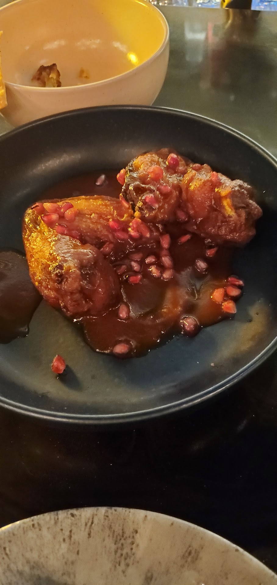 Next we had the pomegranate chicken wings. This was a much larger portion than we expected. It had 4 full wings. They were succulent & had a delicious sauce generously covering every wing not just the top ones. Plenty of pomegranate seeds were sprinkled on top. I would highly recommend ordering these, they were our favorite amongst everything we ordered.