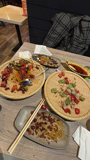 We devoured it. We kept adding more and more chili. Food was amazing and served quickly. The numbing spicy sensation was new and exciting. It was a mellow spice meaning itâd give you burn but it wouldnât sear your tongue off, meaning you could go for more. And the pro about the low heat meant the flavor of the food was able to really shine without the heat completely overpowering it like with other spicy foods.