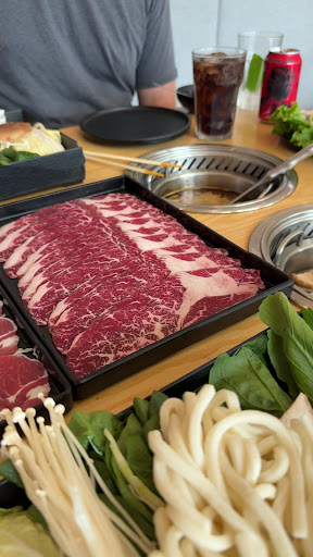 Read moreDelicious hotpot with good quality ingredients & generous portions. Here’s what I learned: we arrived around 7 pm and waited around 5-10 mins for a table which is great! I did notice that groups that arrived after 8 pm had much longer wait times, so keep that in mind for your dinner time planning sukiyaki soup base was the best, I’d order it for everyone at the table. didn’t like the mushroom broth that much sides we ordered: tiger shrimp, fish balls, and shrimp balls. Fish balls were our favourite! we got the Classic standard package with 3 meats and just ordered the 3 halal meat options. The best meats are the Beef’s (Australian & Wagyu). We didn’t like the lamb as much tbh, I wouldn’t order lamb again cooking times: hotpot advice is usually to cook meats for 10-15 sec. We found that cooking lamb for 1.5 minutes and cooking the beef until the fat is melting (1-2 minutes) makes the meat taste better. I would encourage people to just experiment and try different cooking times! dips: best sauces were the sweet soy sauce, as well as all the spicy sauces and chilli oil. Mushroom sauce was also decent noodles: we tried Udon and Ramen, next time I’d order multiple Udon and only Udon!