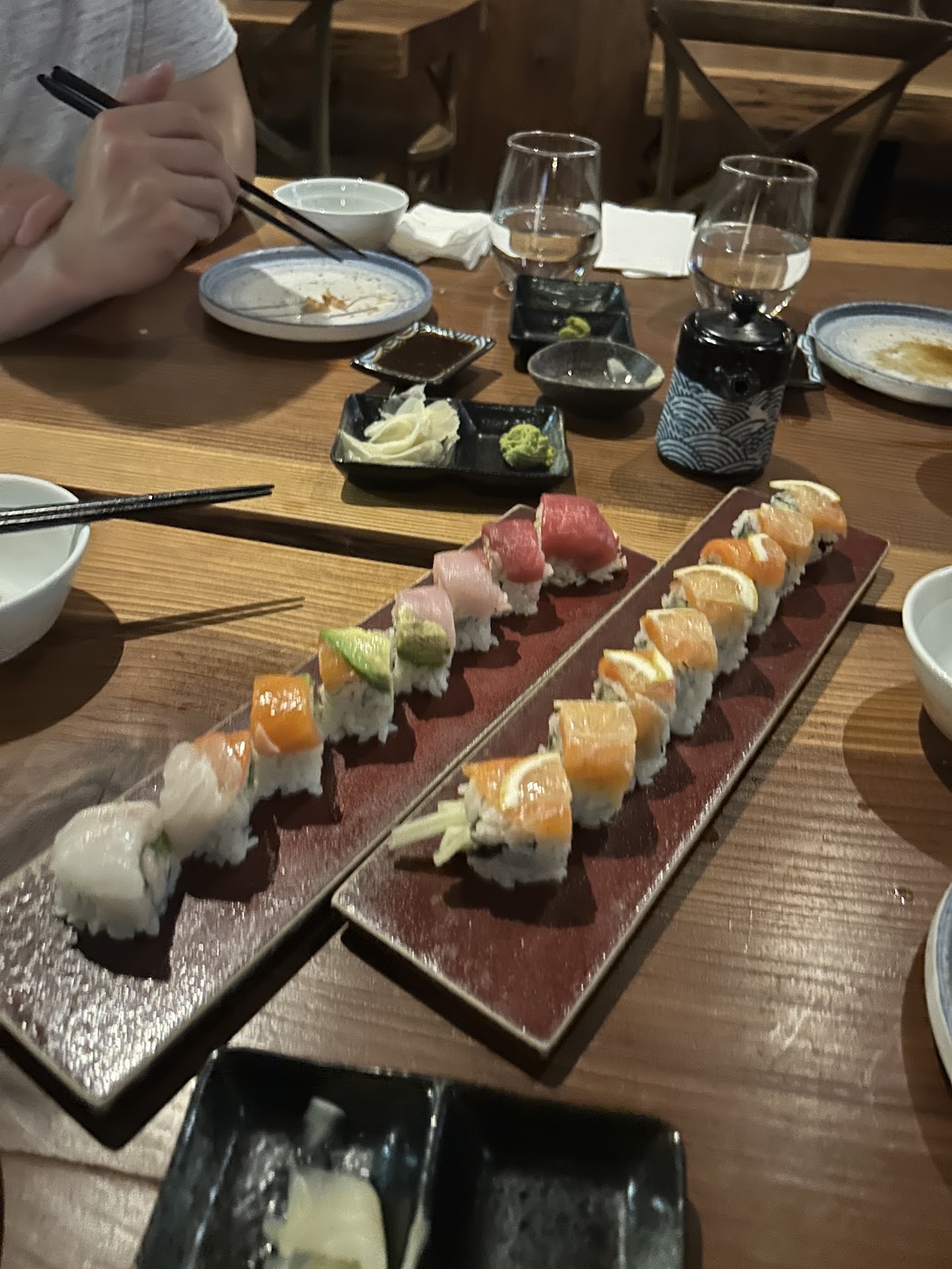 We were sitting at the sushi counter, so after our starters, we just ordered a specific number of nigiri and had the chefs pick out the best ones. It was all so delicious. Plus, we learned all kinds of stuff about the differences in growing regions, why you prepare sushi different ways, and best of all, new kinds of fish that we really like and will order in the future.