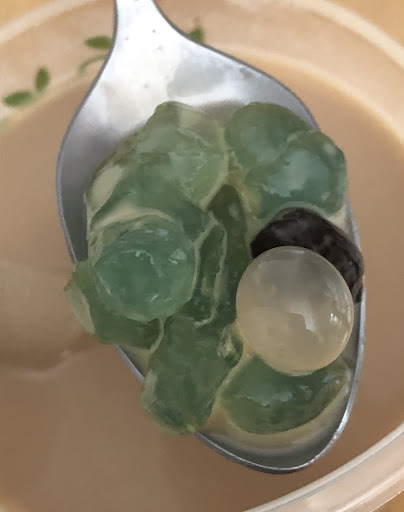 The traditional jasmine milk tea with half sweet was okay, I did order grass jelly for my drink, but I had to chop them into drinkable pieces with my straw.