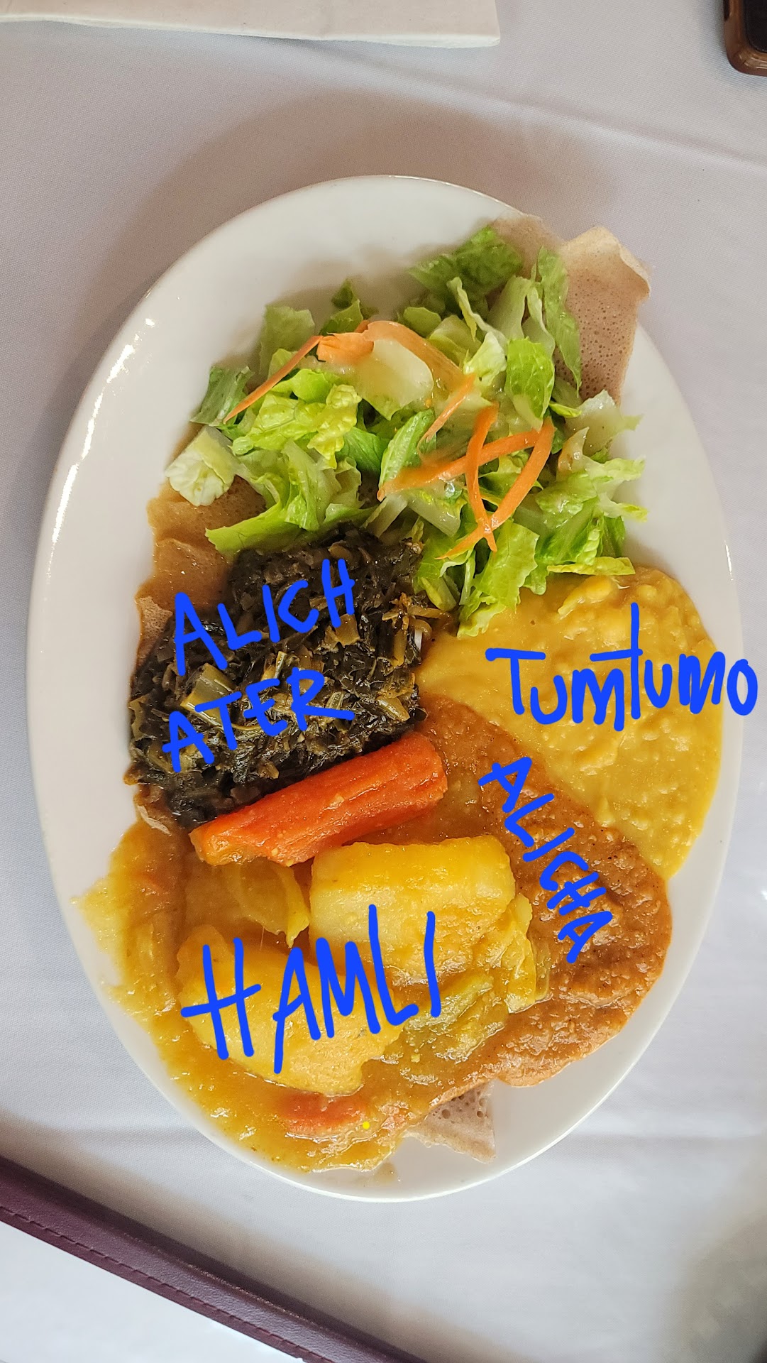 Read moreThis is easily one of our very favorite eateries in the Bay Area. We only make it here a few times a year, but each and every time it is with much tastebud anticipation, and then some tastebud elation as we dine on our usual, kitfo and collards/spinach. We enjoyed this meal, again, just a few nights ago. This place has a simple decor, with just the right amount of lighting. The back "sunroom" is fun in the evenings, though just a bit brighter, and also a tad noisier than the front area as the tables are a bit closer and the ceiling lower. The bar is very well stocked, and should keep most anyone very happy with the selection. Over the years we have seen a few somewhat negative reviews here, and the service seems to be the most common factor. We have never found this to be true. The staff is definitely laid back, and in a really good way. They are attentive, gracious, and helpful, to a T. The real star is the food. We have been coming here for nearly ten years, and have never ordered any dish that wasn't simply delicious. These meals are truly made with care. The alicha, tumtumo, kilwa dorho, shiro, zigni, and zebhi doro are all scrumptious, but, of course, our faves are the kifo and the hamli. Yum! And, if you don't have time to stop for a meal, grab it to go. During the COVID craziness, we ordered take out many times (gotta get our fix of kitfo!) and it was all perfect. You simply must try...