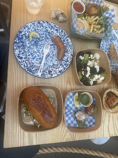The summer salad was the perfect startāvibrant, crisp, and bursting with seasonal flavors that felt like a plate of sunshine. The fish and chips were outstanding: perfectly golden, light, and flaky with a crunch that made every bite satisfying. And the star of the meal, the rockfish sandwich, was simply incredibleādelicate yet packed with flavor, balanced by fresh toppings and a soft, warm bun.