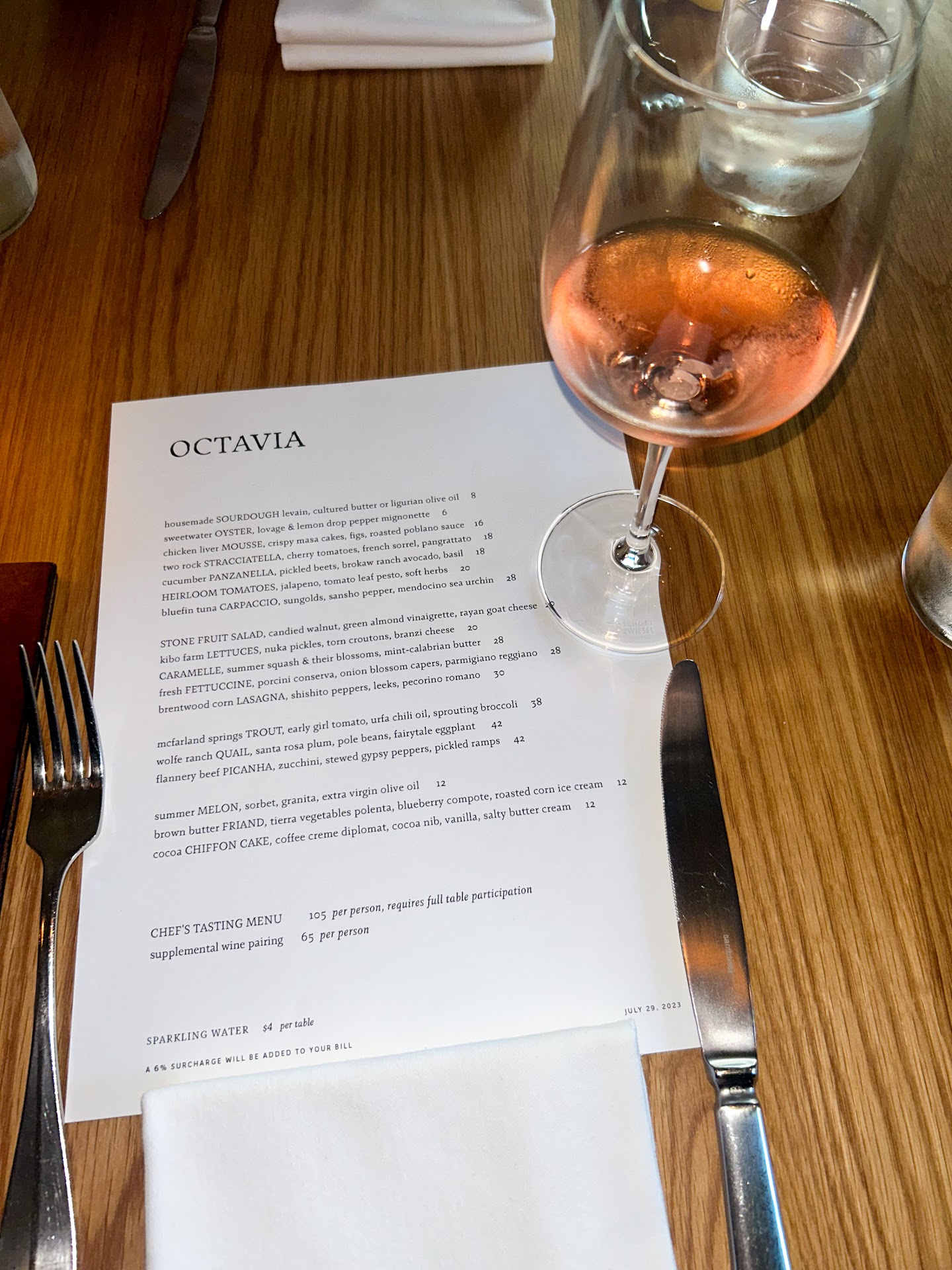 The wine pairings were spot-on and complemented everything we ordered. However, the true highlight was the food itself. We savored the delectable bluefin tuna carpaccio, mouthwatering caramelle, rich Brentwood corn lasagna, and fresh fettuccine. Among them, the lasagna stole the show with its vibrant colors and comforting flavors, reminiscent of a well-done elevated version of Thanksgiving corn casserole.
